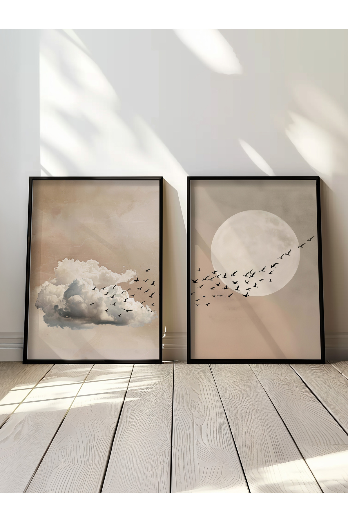 Siyah ahşap çerçeveli 2'li kuşlu bulutlu tablo yuna44 Siyah ahşap çerçeveli 2'li kuşlu bulutlu tablo yuna44 50 x 70
