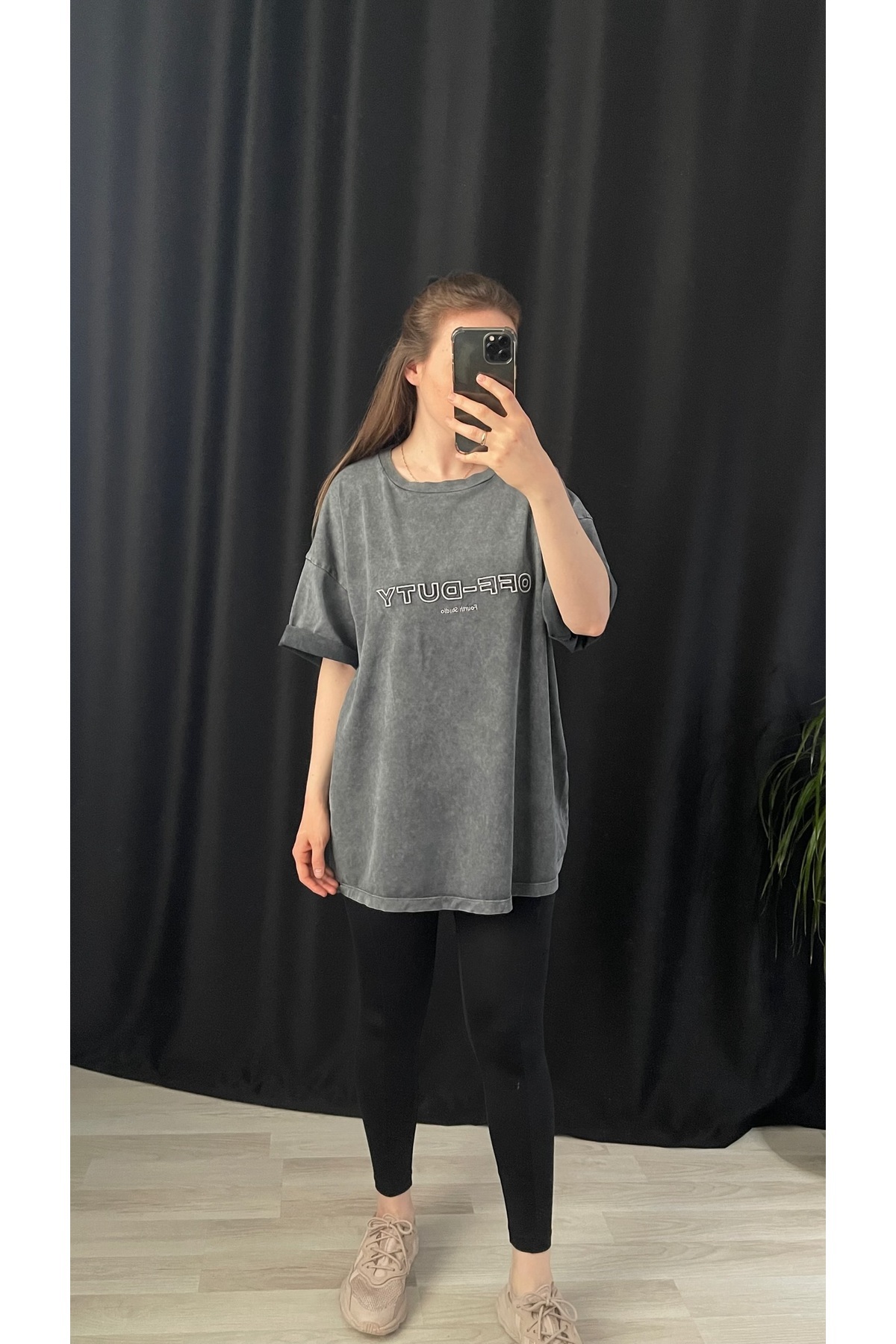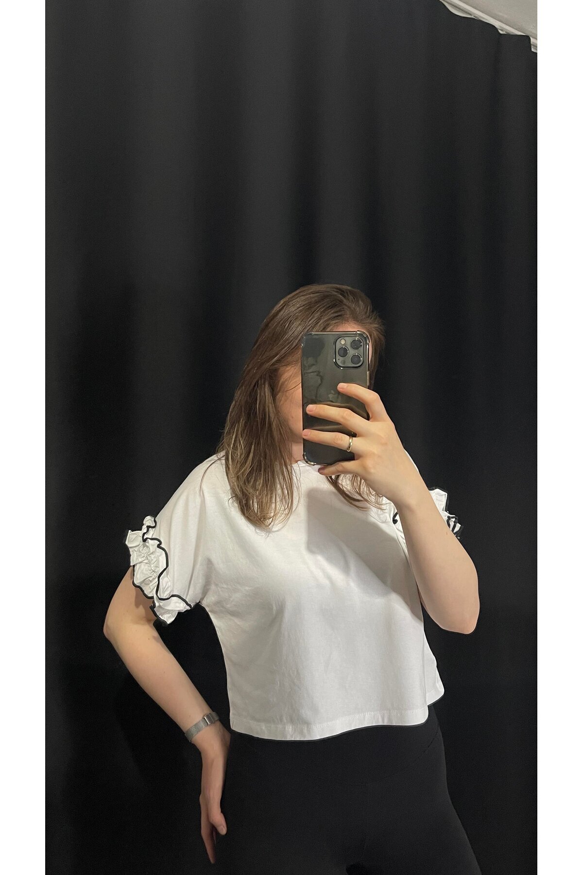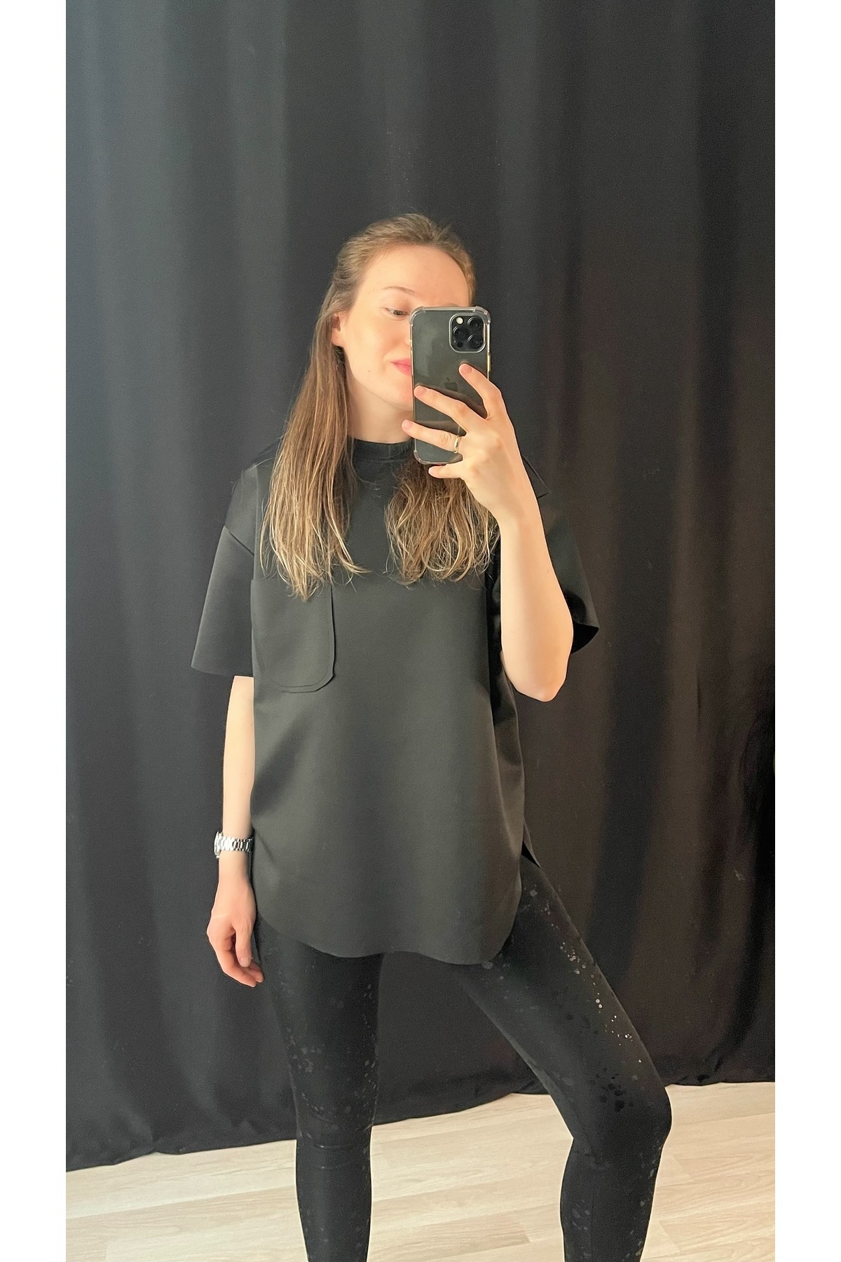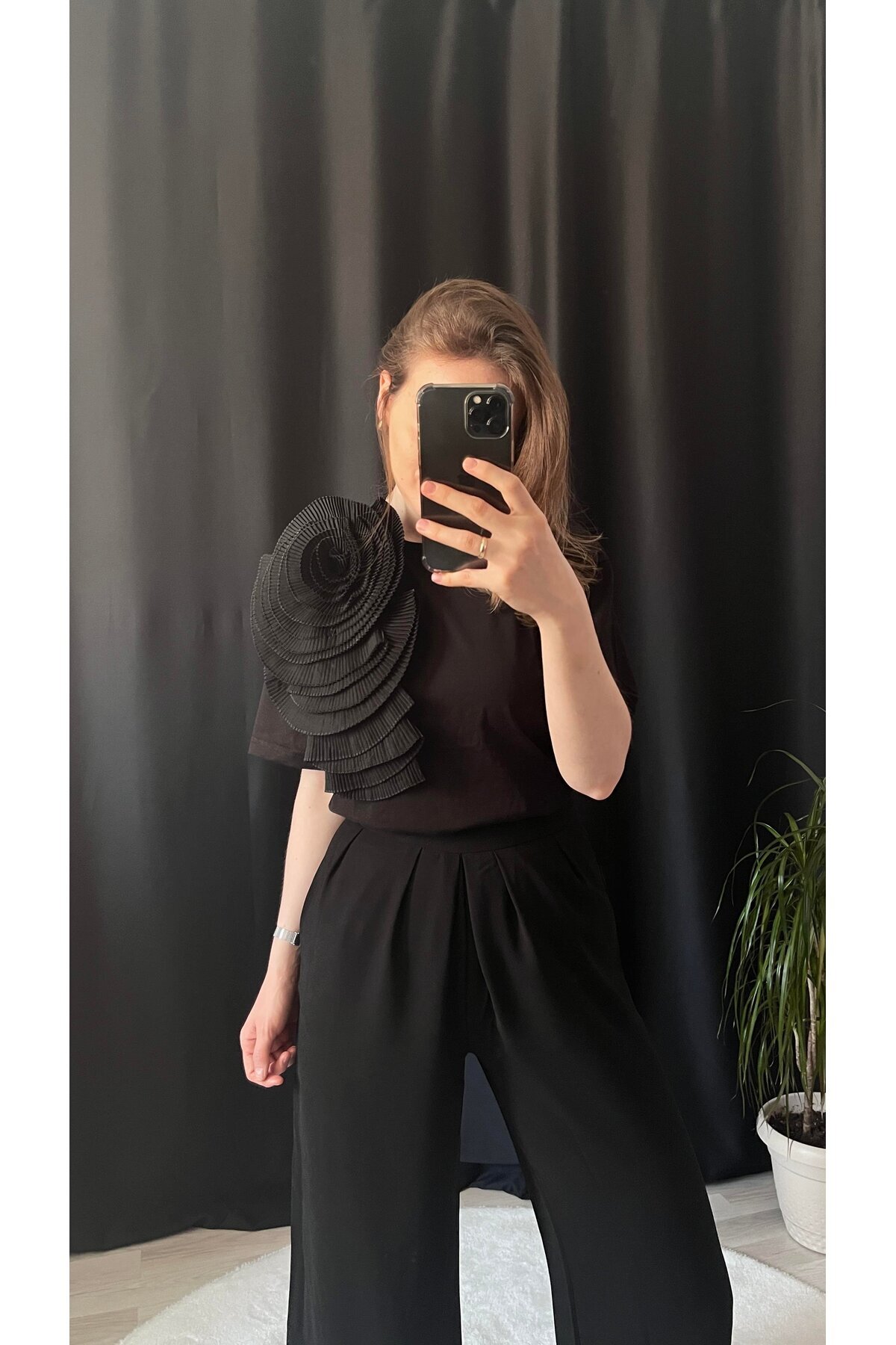 Gül Detaylı Siyah T-Shirt Gül Detaylı Siyah T-Shirt 240112 L