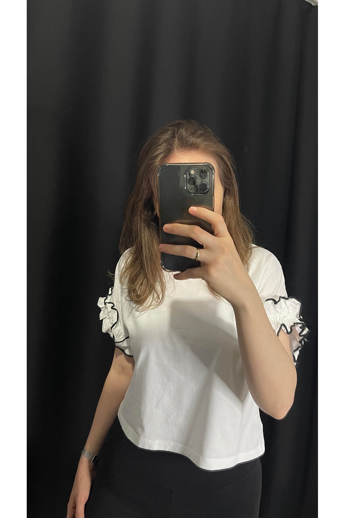 Kolları Fırfırlı Beyaz T-Shirt Kolları Fırfırlı Beyaz T-Shirt 240117 XL