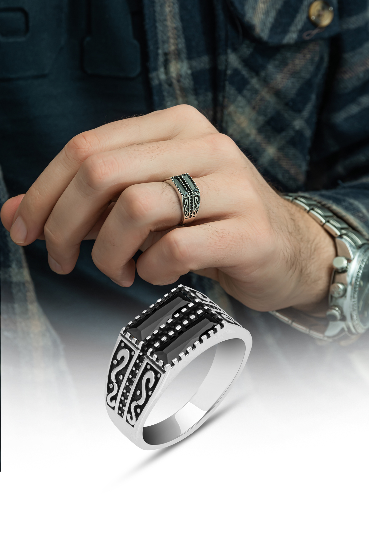 Siyah Oniks Taşlı 925 Gümüş Yüzük Siyah Oniks Taşlı 925 Gümüş Yüzük GNS58870 27