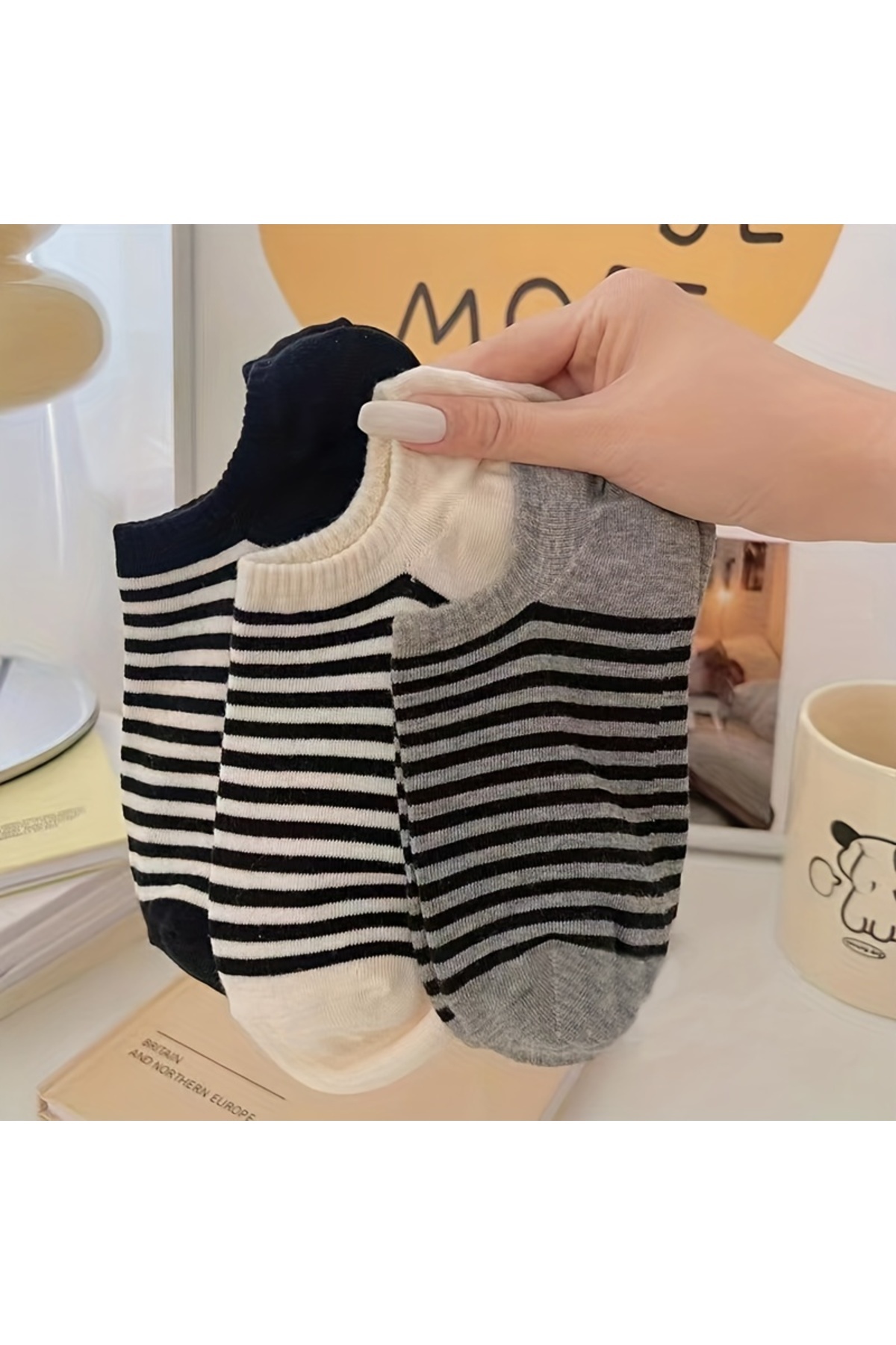4 Çift Çizgili Kadın Çok Renkli Görünmez Sneaker Çorap 4 Çift Çizgili Kadın Çok Renkli Görünmez Sneaker Çorap ddd-077çrmnfgghhgyhhyg 36 - 40