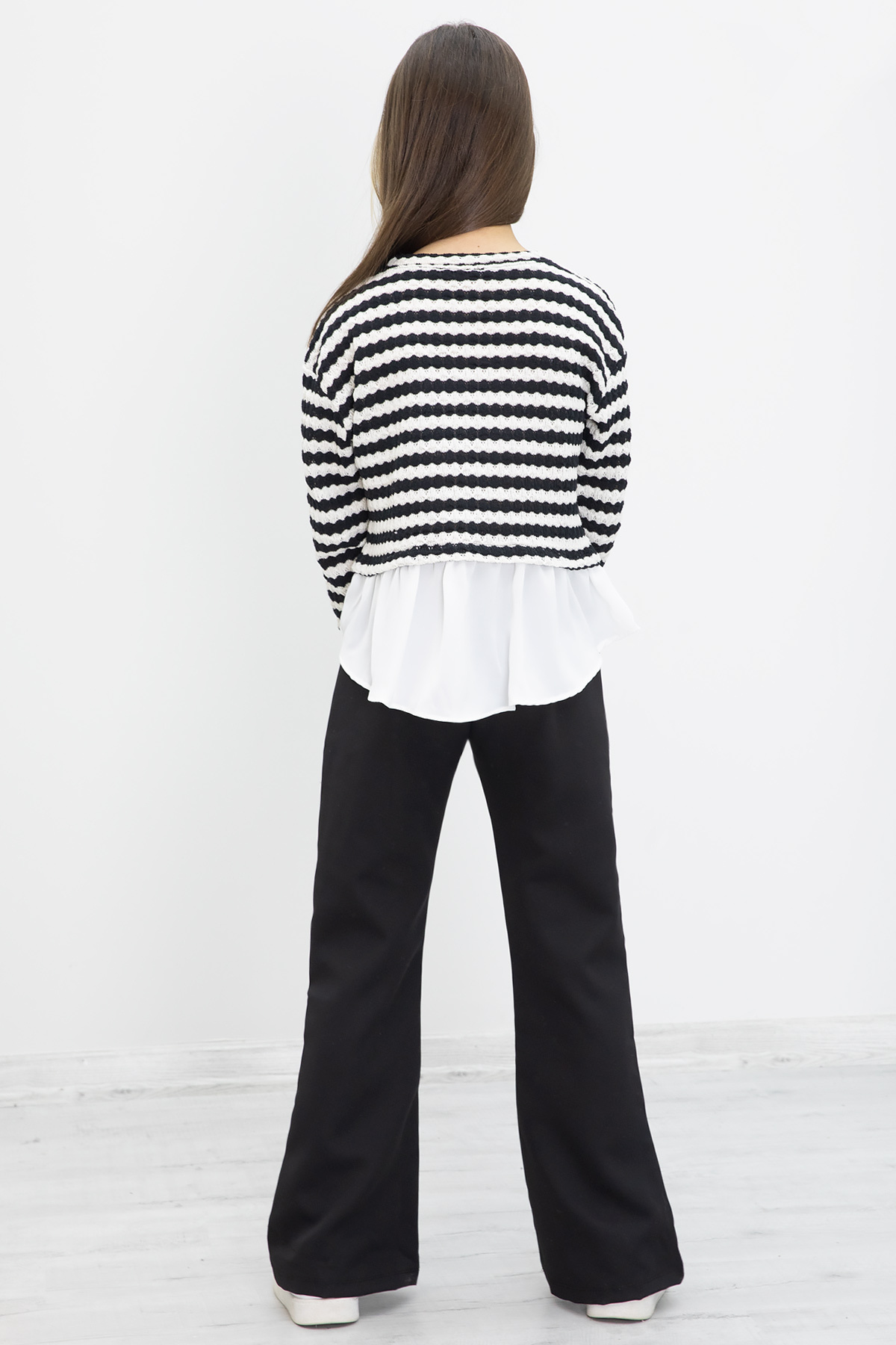 Siyah Çizgili Bluzlu İspanyol Paça Pantolonlu Kız Çocuk 2li Takım 19986 Siyah Çizgili Bluzlu İspanyol Paça Pantolonlu Kız Çocuk 2li Takım 19986 GRPCM00019983 11-12 Yaş