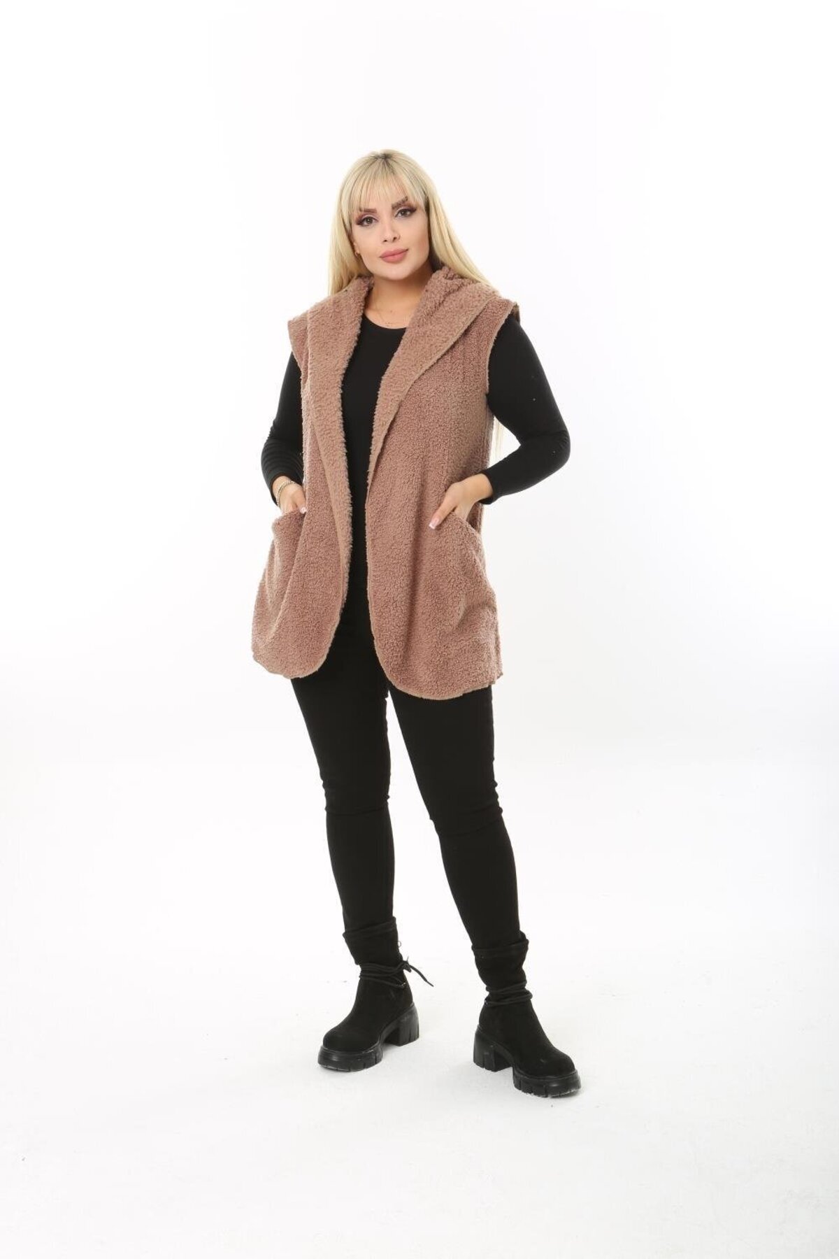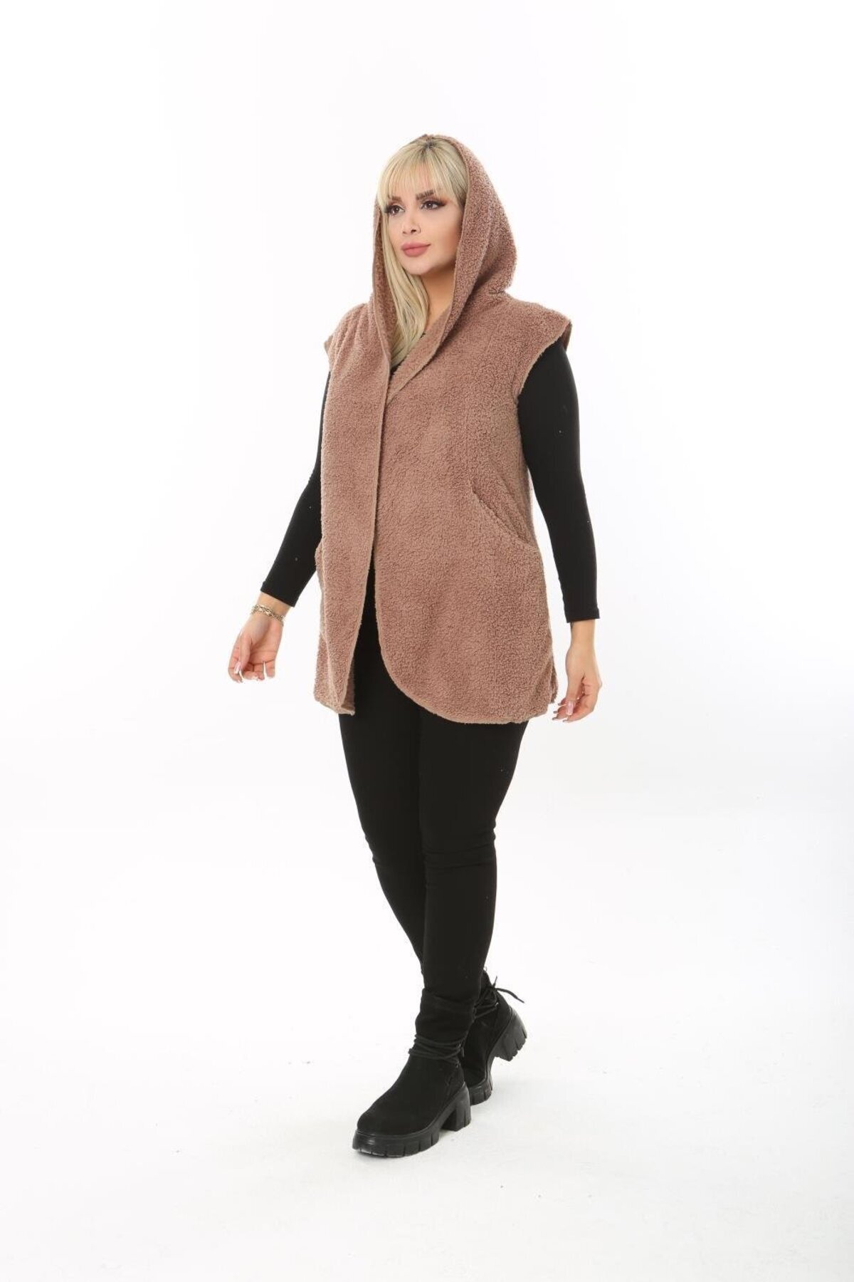 Kısmet Sepeti Kadın Peluş Welsoft Kapüşonlu Vizon Yelek Kısmet Sepeti Kadın Peluş Welsoft Kapüşonlu Vizon Yelek TXF988A083172 2XL