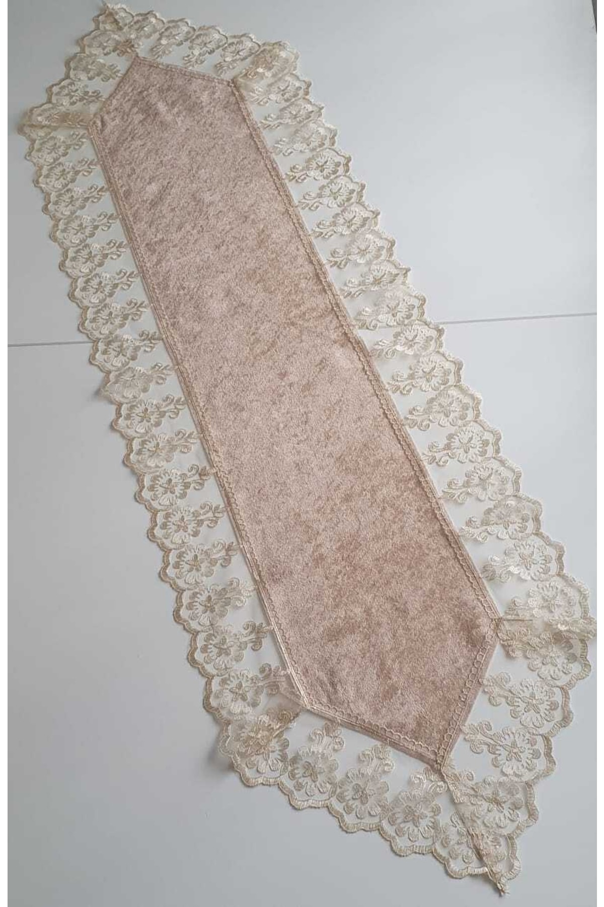 Kadife dantel detaylı runner masa örtüsü Kadife dantel detaylı runner masa örtüsü 453 تک سایز