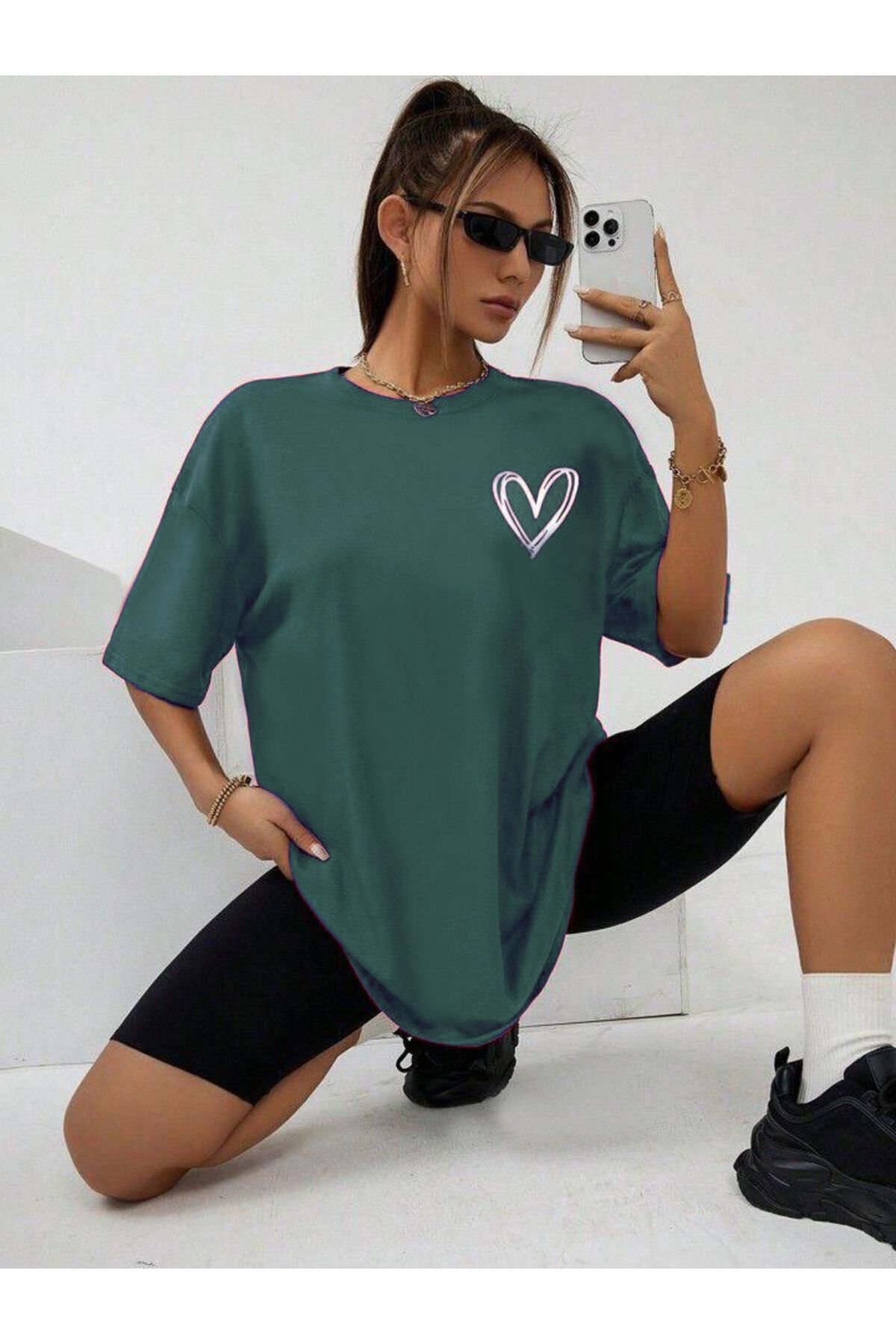 İÇ İÇE KALPLER BASKILI BASİC T-SHİRT İÇ İÇE KALPLER BASKILI BASİC T-SHİRT hmtkalpler 2XL