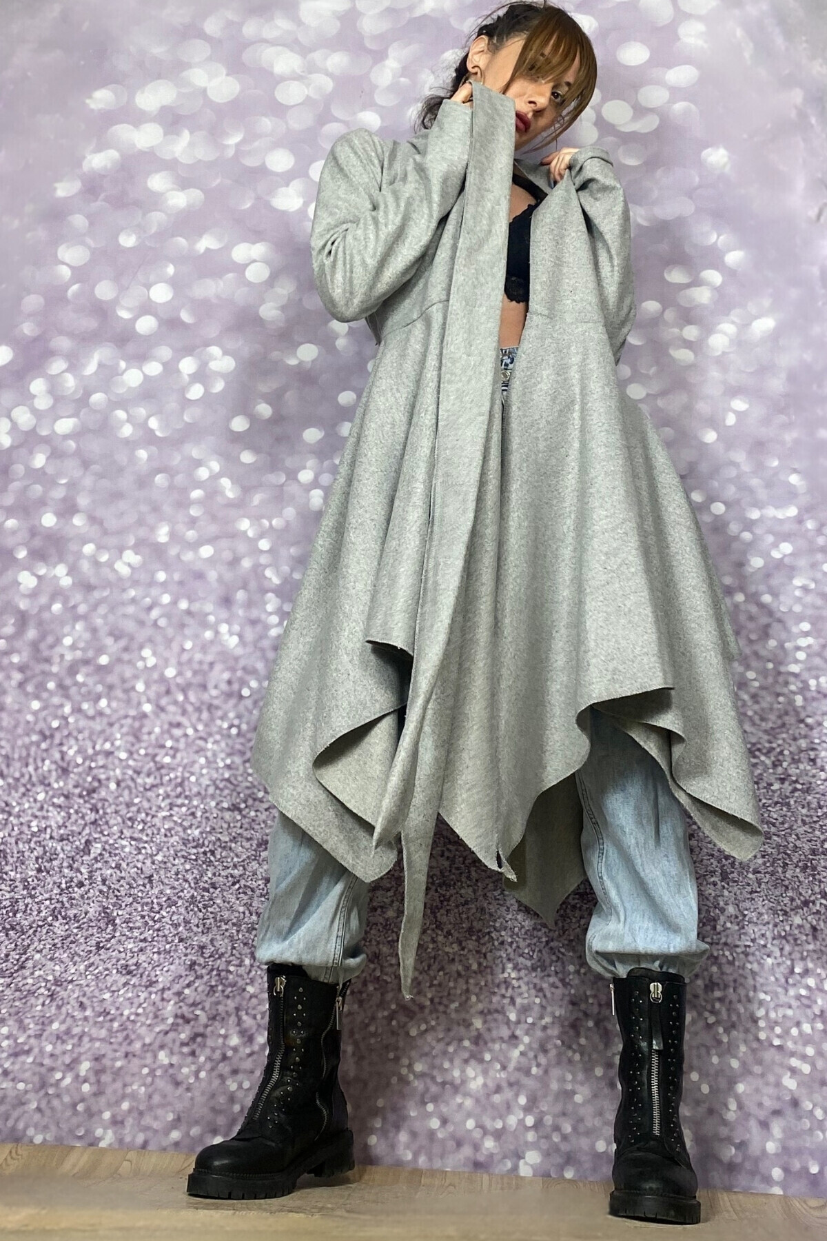 AÇIK GRİ ASİMETRİK KESİM KAŞE CEKET AÇIK GRİ ASİMETRİK KESİM KAŞE CEKET CKE2410 52