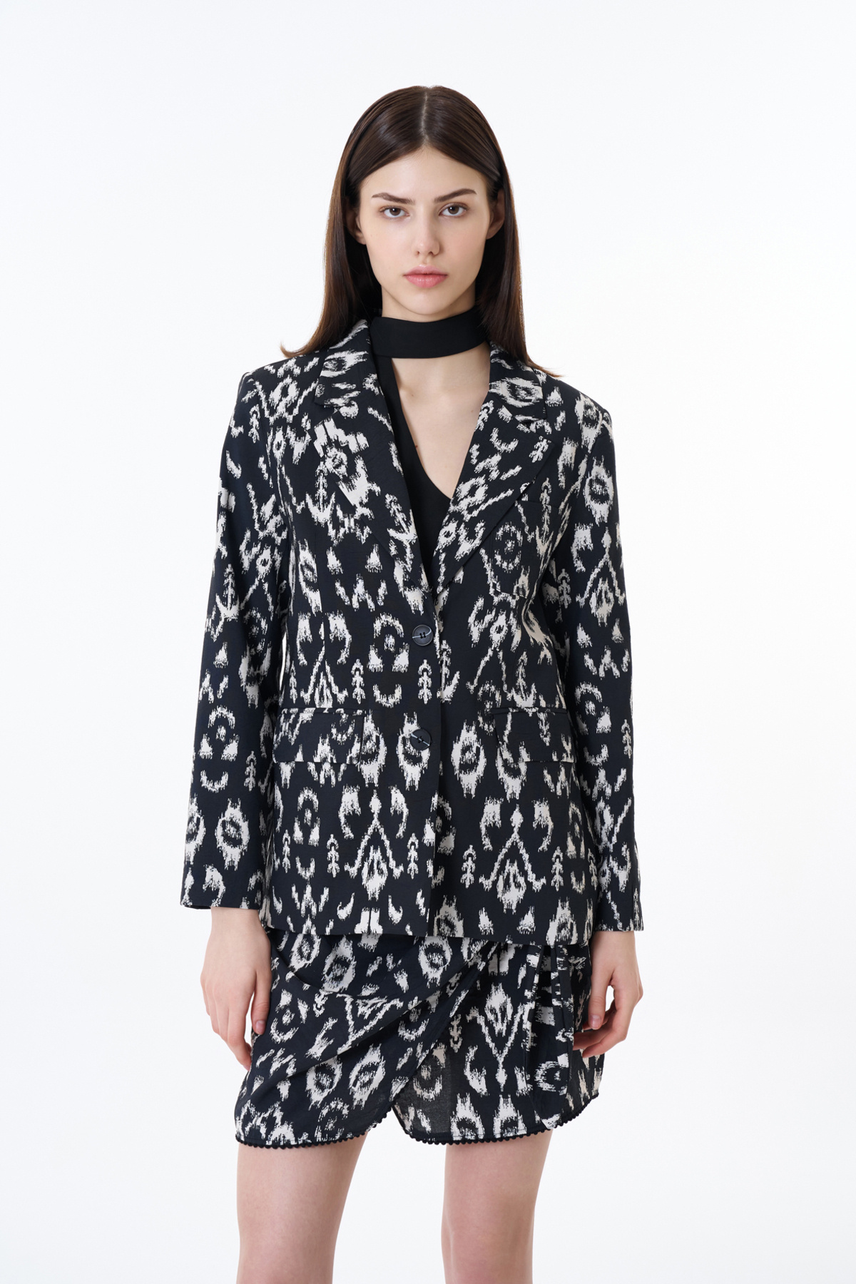 Yılan Desenli Düğmeli Ceket Bej Yılan Desenli Düğmeli Ceket Bej 25YCKT00039 L