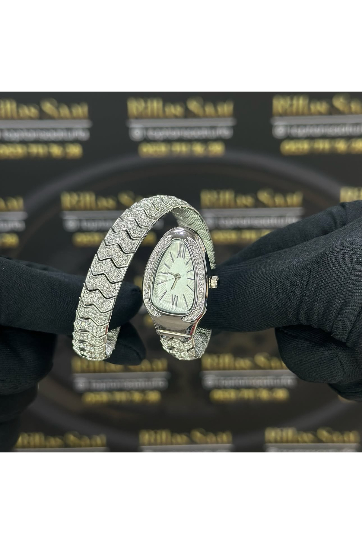 Yılan Desen Lüx Taşlı Kadın Kol Saati Gümüş Renk PL-1520B2x Yılan Desen Lüx Taşlı Kadın Kol Saati Gümüş Renk PL-1520B2x PL-1520Bx تک سایز