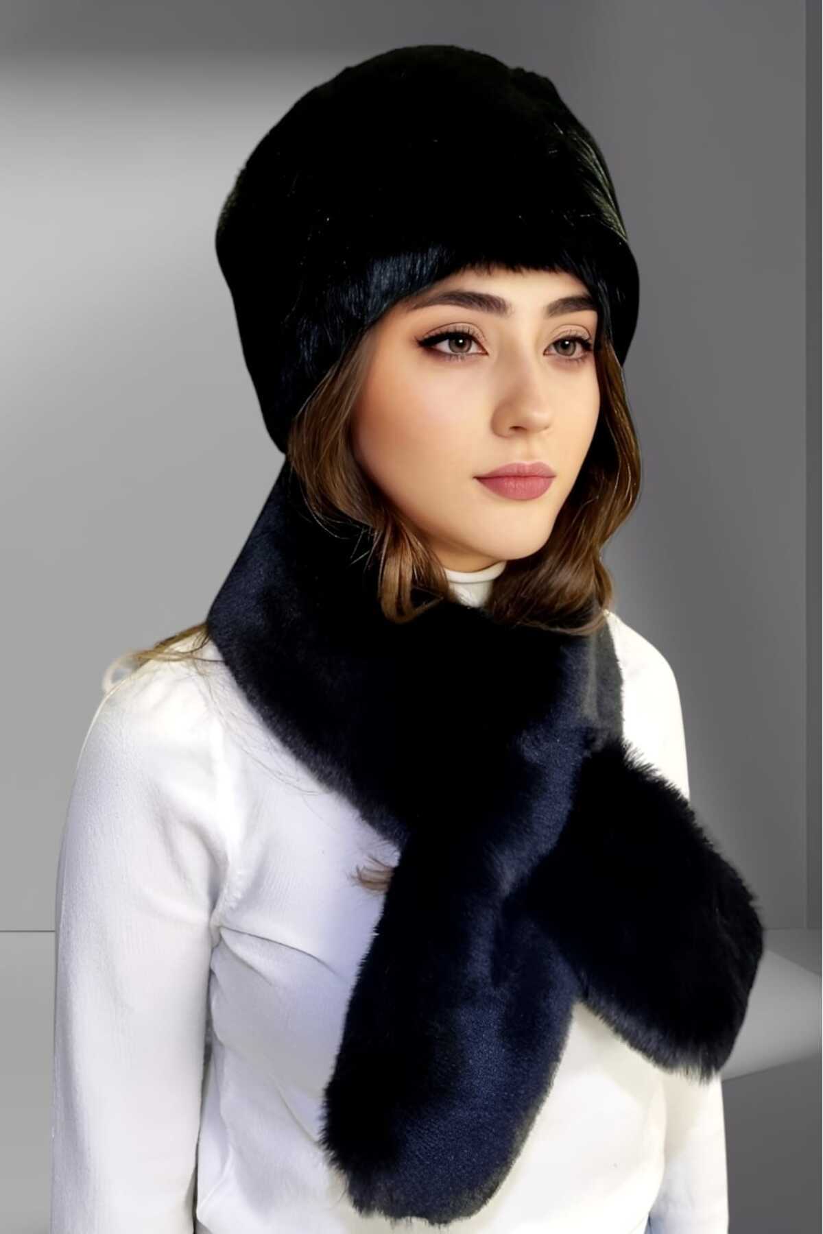 Kadın Vegan Kürk Kalpak-Atkı Set Kadın Vegan Kürk Kalpak-Atkı Set VMD24 تک سایز
