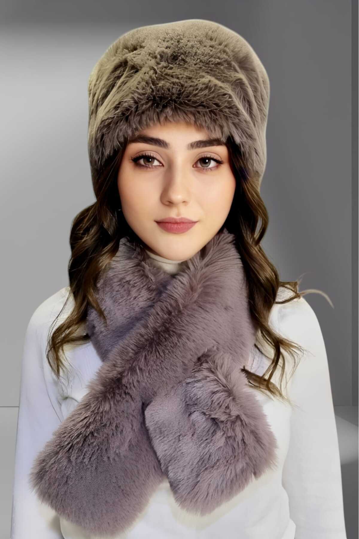 Kadın Vegan Kürk Kalpak-Atkı Set Kadın Vegan Kürk Kalpak-Atkı Set VMD24 تک سایز