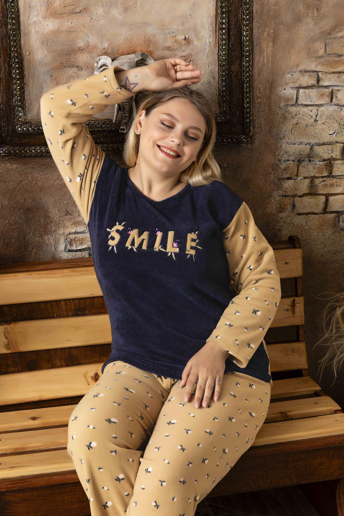 Kadın Battal Büyük Beden Önden Düğmeli Uzun Kollu Polar Pijama Takımı Kadın Battal Büyük Beden Önden Düğmeli Uzun Kollu Polar Pijama Takımı 687AP200 3XL