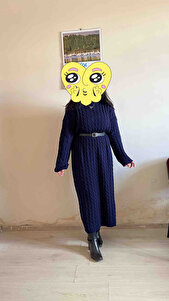 Lacivert Bisiklet Yaka Saç Örgülü Kadın Triko Midi Elbise Lacivert Bisiklet Yaka Saç Örgülü Kadın Triko Midi Elbise 36772 Standart