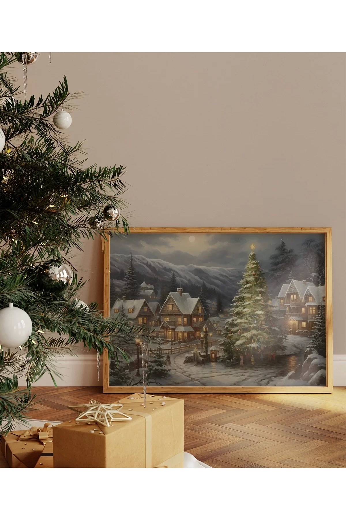 Noel Ağacı Ile Şömine Ve Önünde Süslemeler Temalı Kanvas Tablo Noel Ağacı Ile Şömine Ve Önünde Süslemeler Temalı Kanvas Tablo DEKOGSTABLO00246 50 x 70