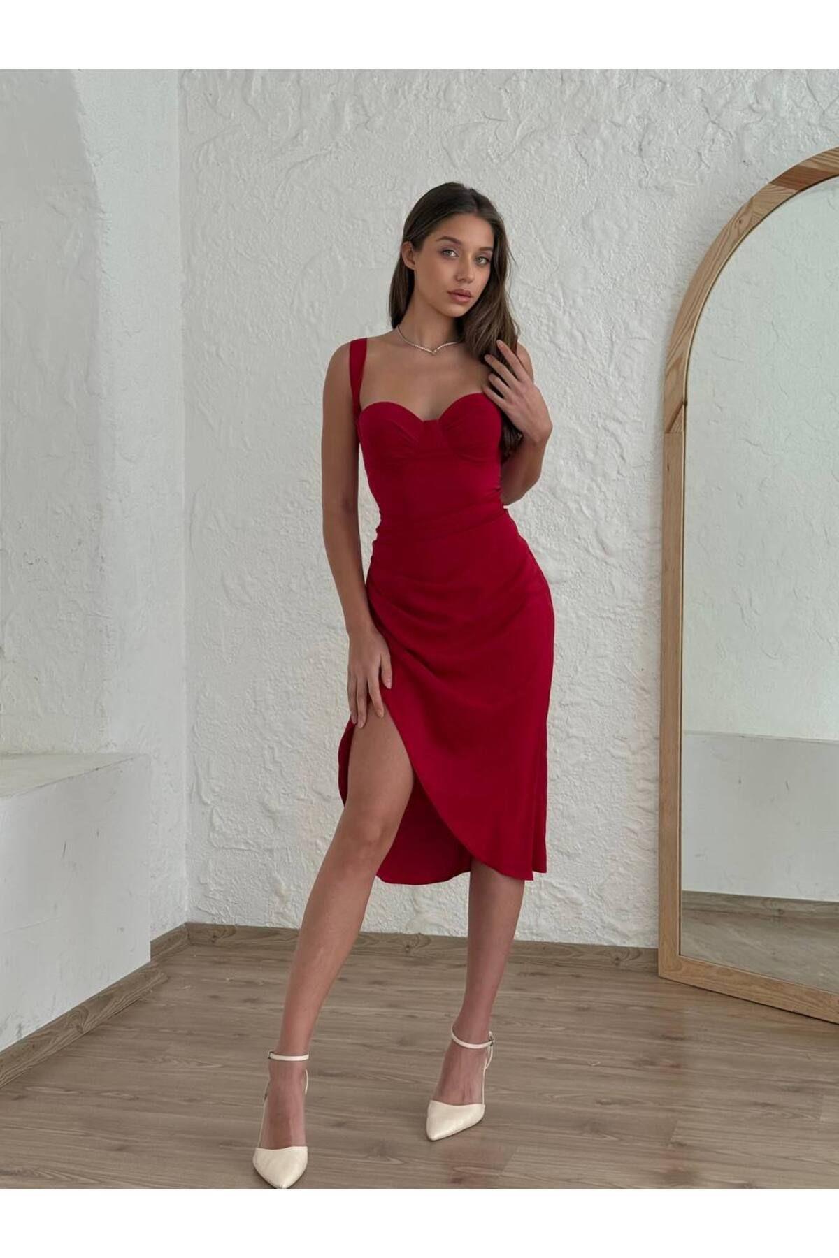 Kadın Abiye Kalın Askılı Kalp Yaka Yırtmaçlı Midi Elbise - Abiye & Mezuniyet Elbisesi Kadın Abiye Kalın Askılı Kalp Yaka Yırtmaçlı Midi Elbise - Abiye & Mezuniyet Elbisesi 100159 L