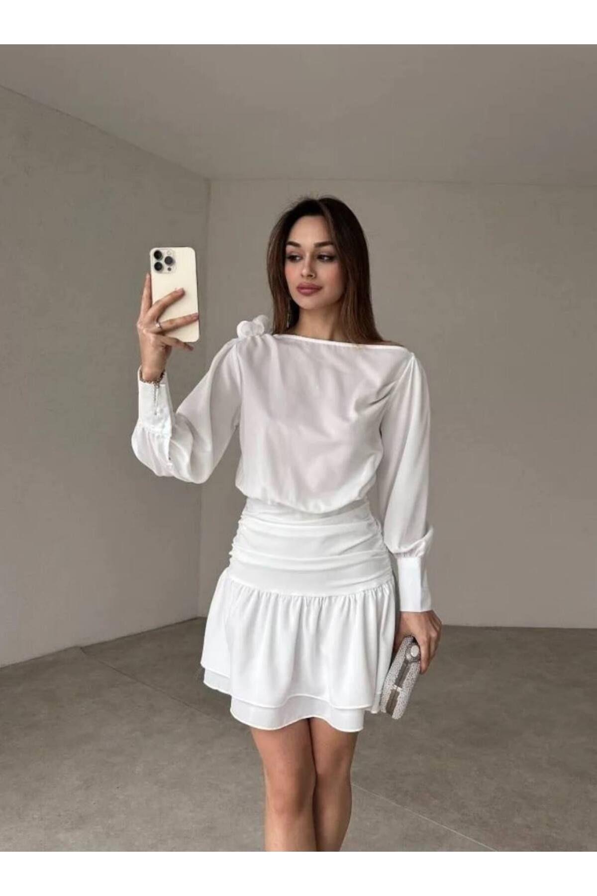 Kadın Abiye Omuzda Gül Detaylı Uzun Kollu Kloş Etekli Mini Abiye & Mezuniyet Elbisesi Kadın Abiye Omuzda Gül Detaylı Uzun Kollu Kloş Etekli Mini Abiye & Mezuniyet Elbisesi 100151 L