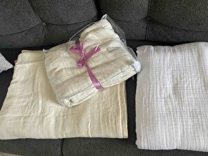 4 Katlı battal boy müslin yatak örtüsü (240x260) beyaz 4 Katlı battal boy müslin yatak örtüsü (240x260) beyaz yatakortusuekru تک سایز