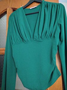 Kadın V Yaka Büzgülü Kol Uçları Lastikli Likralı Bluz Kadın V Yaka Büzgülü Kol Uçları Lastikli Likralı Bluz S-24Y0840118 XL