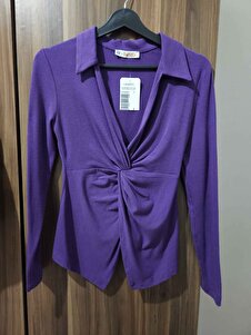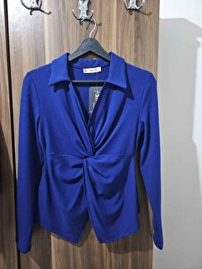 Kadın Polo V Yaka Düğüm Detaylı Likralı Bluz Kadın Polo V Yaka Düğüm Detaylı Likralı Bluz S-24Y0840119 XL