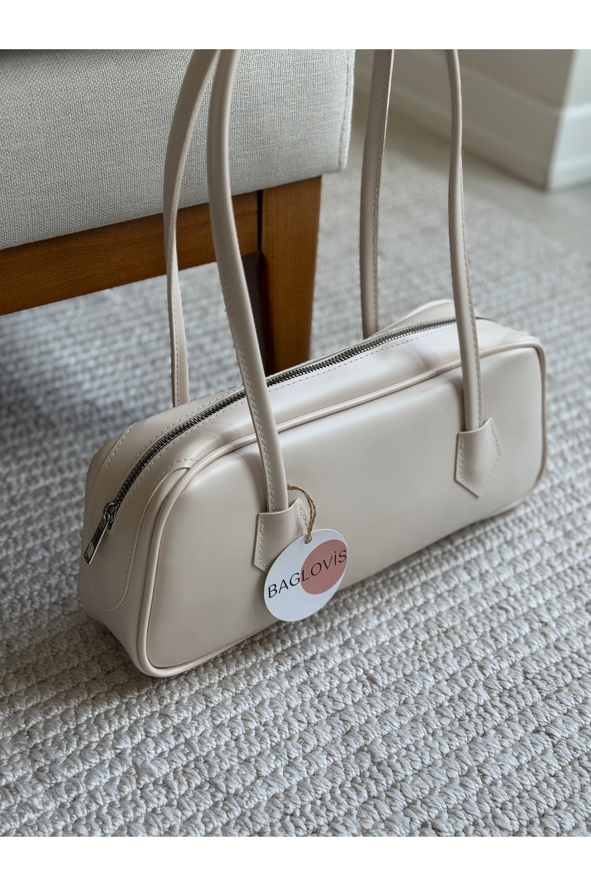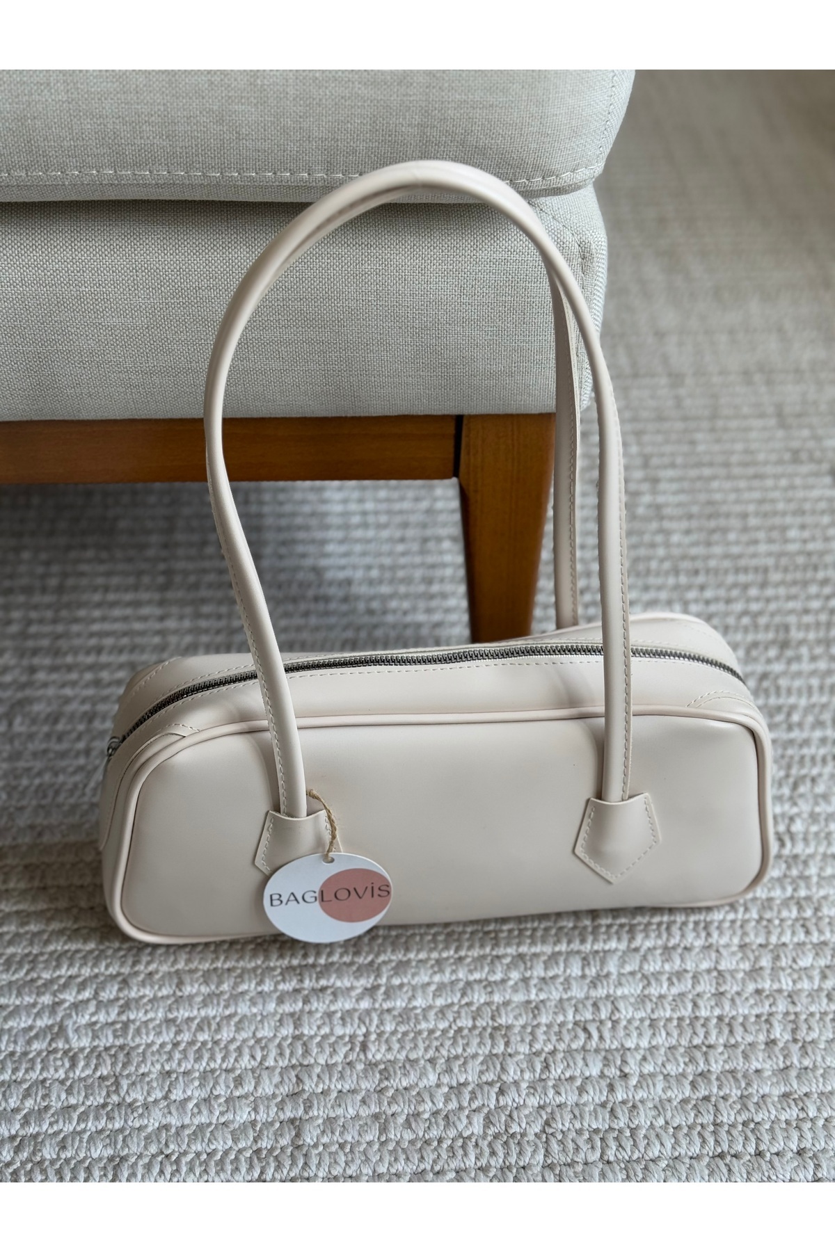 UZUN ASKILI BAGET KREM KADIN OMUZ ÇANTASI UZUN ASKILI BAGET KREM KADIN OMUZ ÇANTASI SAND تک سایز
