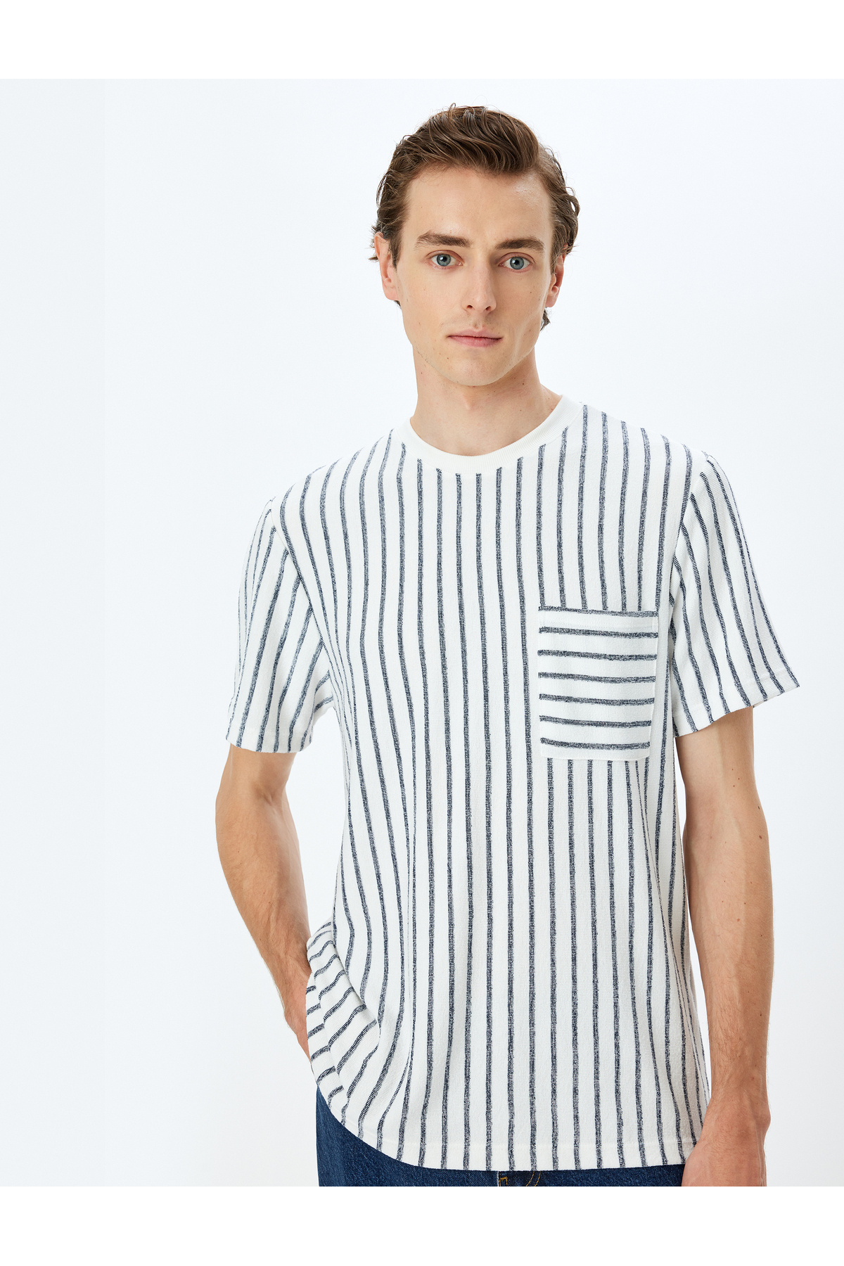 Bisiklet Yaka Cep Detaylı Regular Fit Pamuk Karışımlı Kısa Kollu Çizgili Tişört Bisiklet Yaka Cep Detaylı Regular Fit Pamuk Karışımlı Kısa Kollu Çizgili Tişört 5SAM10025HK 2XL