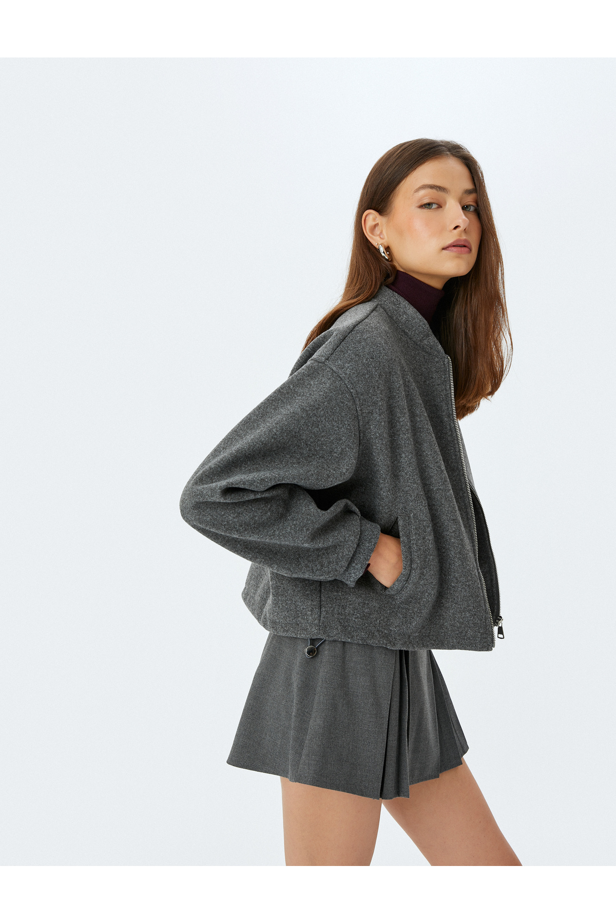 Fermuarlı Dik Yaka Cep Detaylı Peluş Sweatshirt Fermuarlı Dik Yaka Cep Detaylı Peluş Sweatshirt 5WAL10877IK XL
