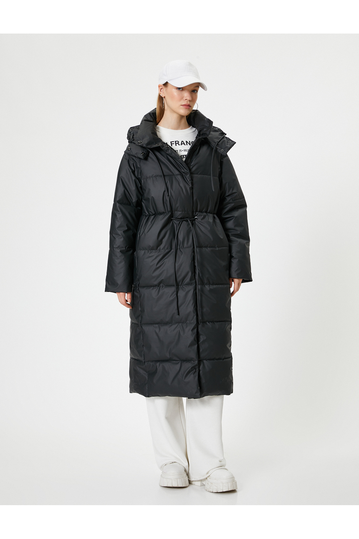 Uzun Şişme Mont Kapüşonlu Su İtici Özellikli Fermuarlı Cepli Uzun Şişme Mont Kapüşonlu Su İtici Özellikli Fermuarlı Cepli 5WAL00016IW 40