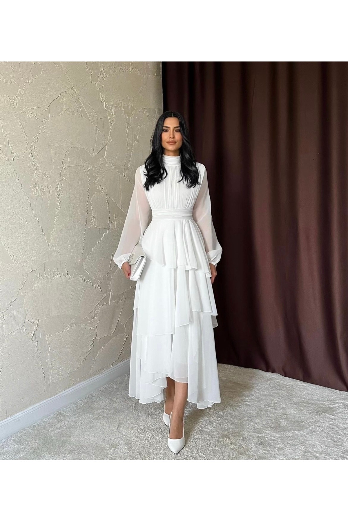 Diamond Kat Kat Tasarım Şifon Elbise Ekru Diamond Kat Kat Tasarım Şifon Elbise Ekru H7KQRLPS3V L