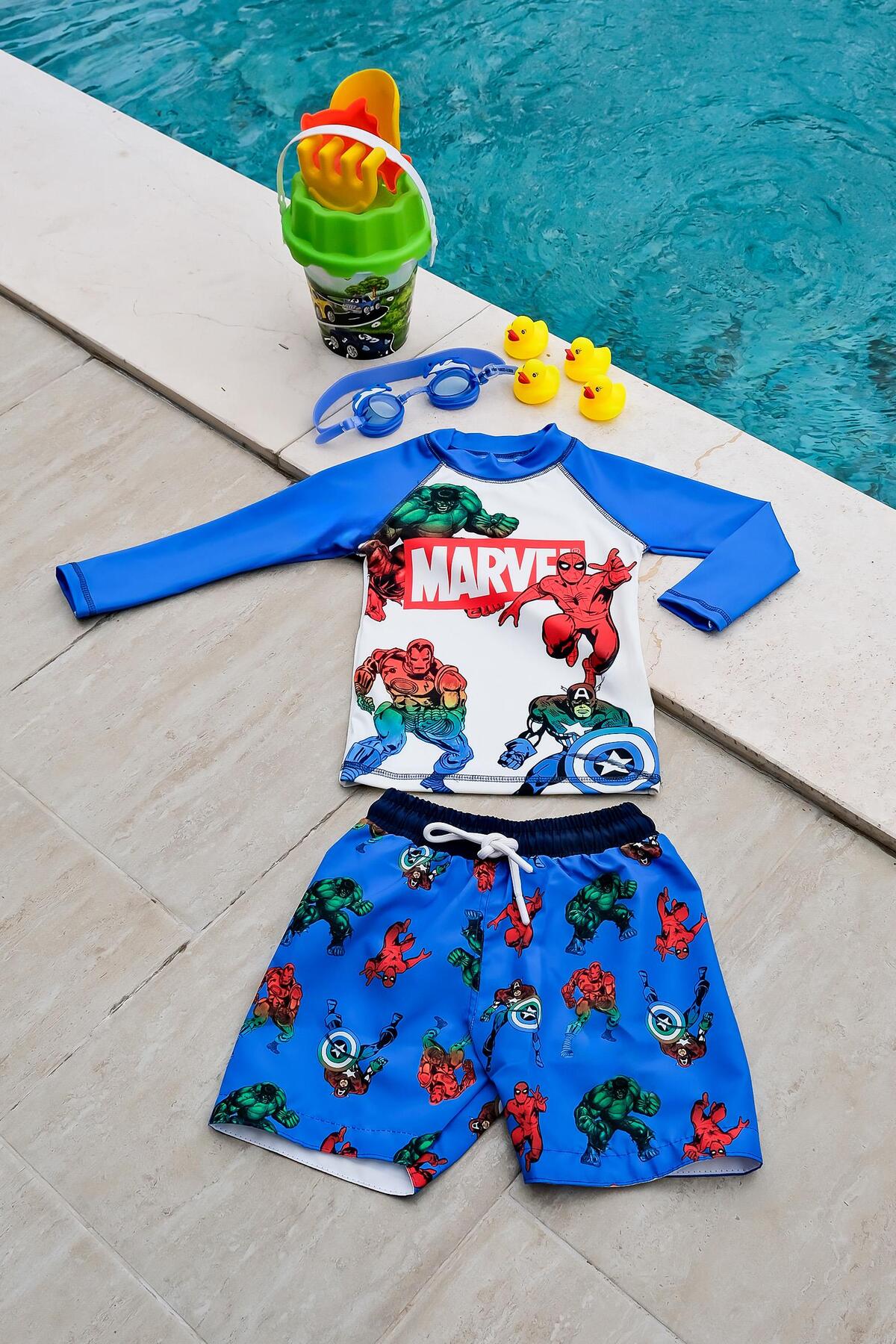Güneş Korumalı Boneli Karakter Desenli Deniz Şortlu Mayo Takım Güneş Korumalı Boneli Karakter Desenli Deniz Şortlu Mayo Takım GKDŞRT-03 9-10 Yaş