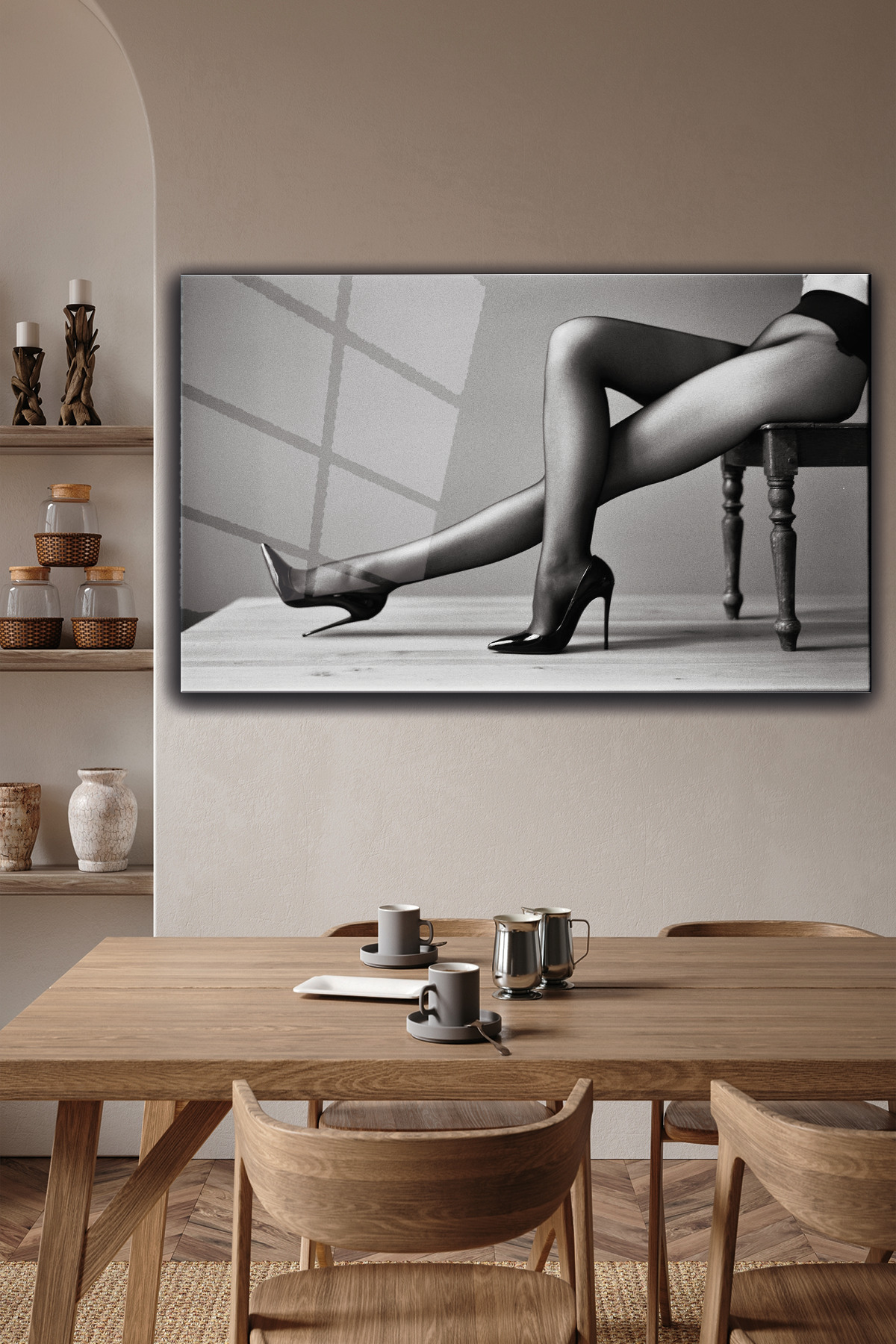 Siyah Kilotlu Çoraplı Kadın Bacağı Desen, 4 mm Temperli Kırılmaz Cam Tablo Siyah Kilotlu Çoraplı Kadın Bacağı Desen, 4 mm Temperli Kırılmaz Cam Tablo MDC-615 90 x 60