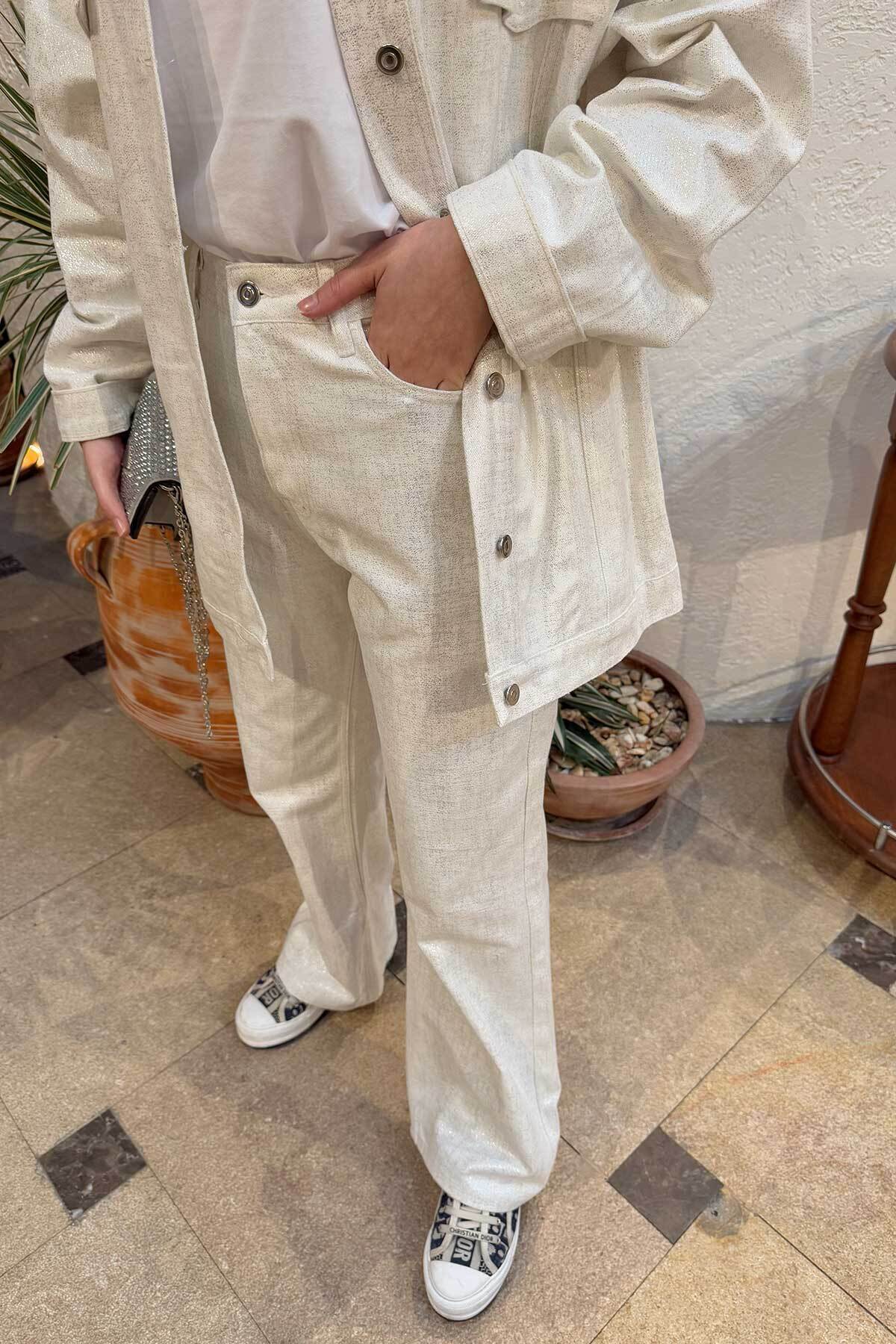 GOLD Bol Paça Varaklı Gabardin Pantolon 32-3501 GOLD Bol Paça Varaklı Gabardin Pantolon 32-3501 P-03816 42