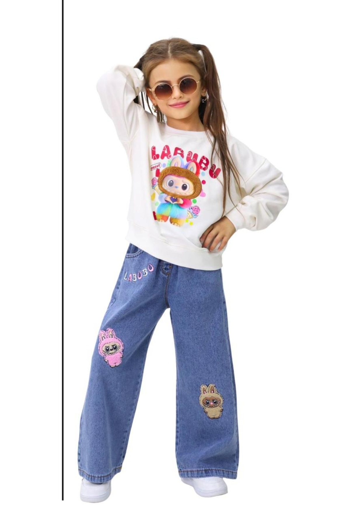 KIZ ÇOCUK KUROMİ MODELLİ KOT PANTOLON NAKIŞLI 2Lİ TAKIM KIZ ÇOCUK KUROMİ MODELLİ KOT PANTOLON NAKIŞLI 2Lİ TAKIM MNKKDS-2981 9-10 Yaş