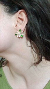 Tasarım Beyaz Mineli Çiçek Altın Renk Kadın Küpe Tasarım Beyaz Mineli Çiçek Altın Renk Kadın Küpe GLRN00708 تک سایز