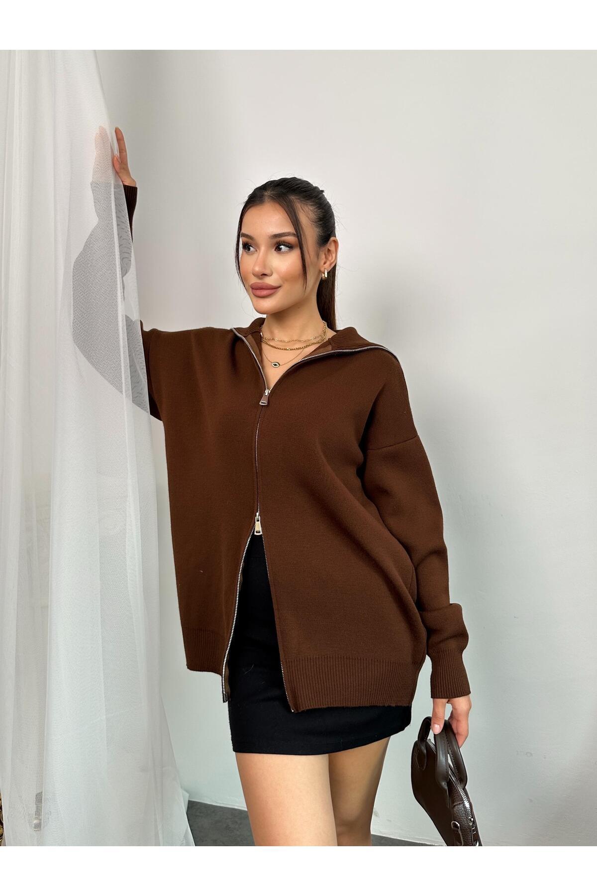 Kadın Siyah Gömlek Yaka Biye Detaylı Çift Fermuarlı Triko Hırka Kadın Siyah Gömlek Yaka Biye Detaylı Çift Fermuarlı Triko Hırka Za00004789691092q Standart
