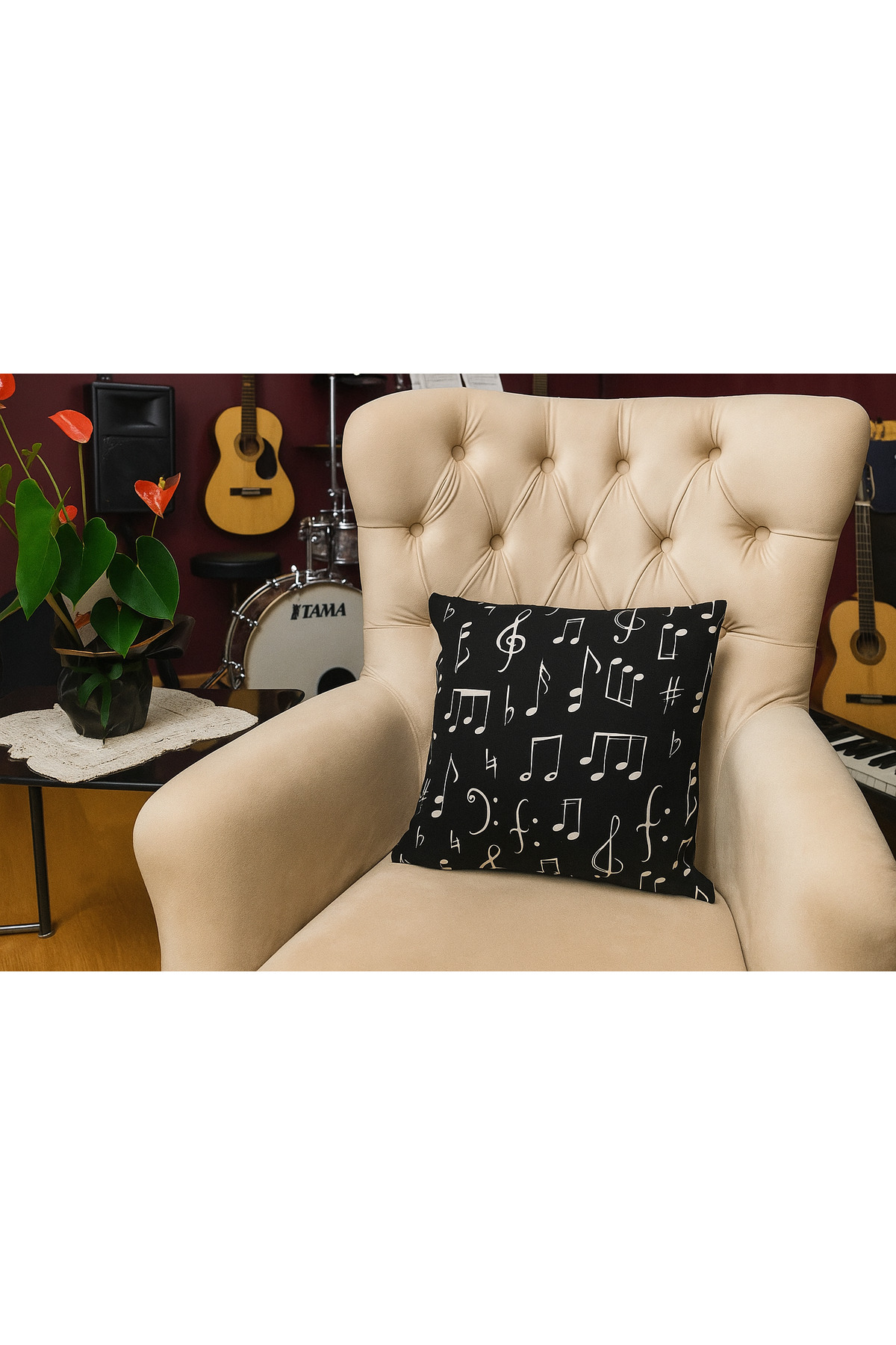 Notalı Ve Piyano Desenli İki ADET iki Tarafı Baskılı Yıkanabilir Yastık Kırlent Kılıfı Notalı Ve Piyano Desenli İki ADET iki Tarafı Baskılı Yıkanabilir Yastık Kırlent Kılıfı ArtHedYasKlf543 43 x 43