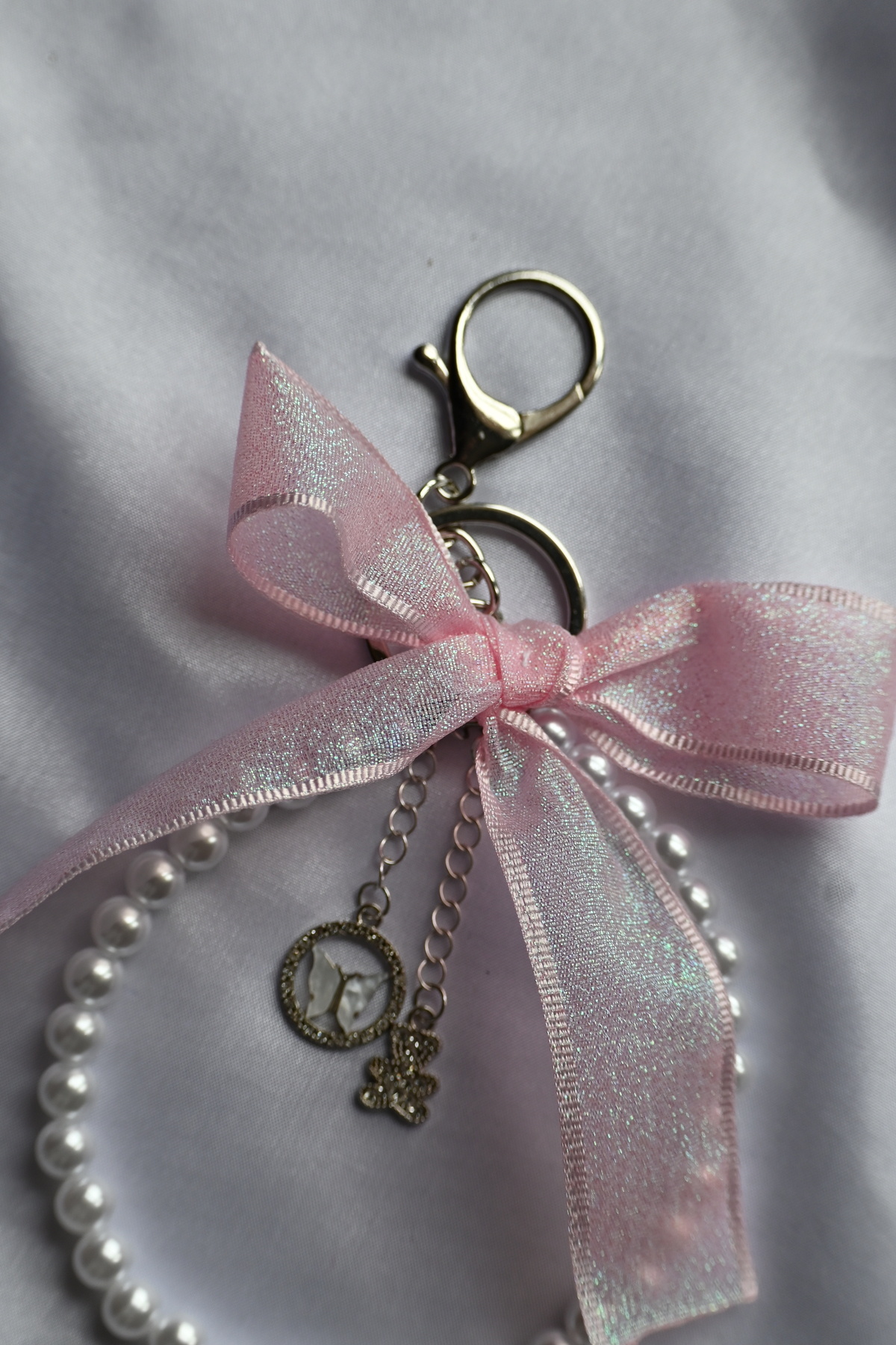 Pembe kurdeleli çanta charmı, pembe anahtarlık, simli kurdeleli charm Pembe kurdeleli çanta charmı, pembe anahtarlık, simli kurdeleli charm charm662 تک سایز