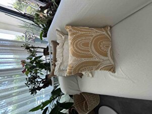 Rengi görseldekinden çok farklı ama tam da benim istediğim renk. Ben satıcıya yazıp bu desende özellikle yağ yeşili-hardal arası rengin çok yakışacağını belirtip bu renkte bir tane sipariş vermek istediğimi söyledim ama satıcı özel sipariş almadıkları cevabını verdi. Kırlenti yine de satın aldım. Gelen ürünü açınca gördüm ki kırlent gerçekte zaten benim istediğim renkteymiş! 😍😁 Şaka gibi cidden. Satıcının ürünleri konusunda maalesef pek bilgisi yok. Onun dışında kumaşının ketensi bir dokusu var, kalitesi fena değil. Dikiş kalitesi iyi, fermuarı gizli fermuar formunda. Kargolama hızlıydı ama paketleme çok özensizdi, ürünler paketsiz olarak direkt kargo poşetine konmuş.