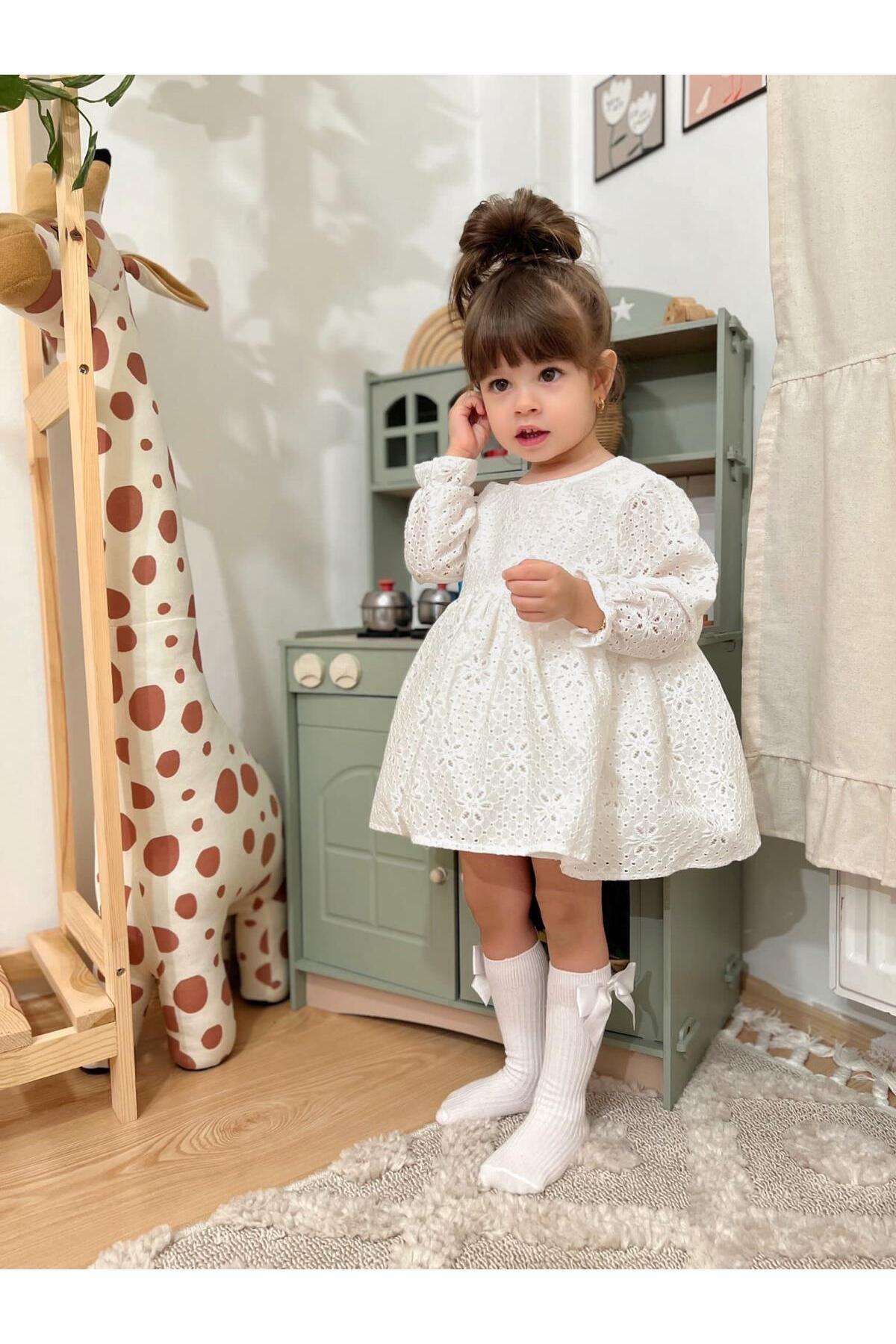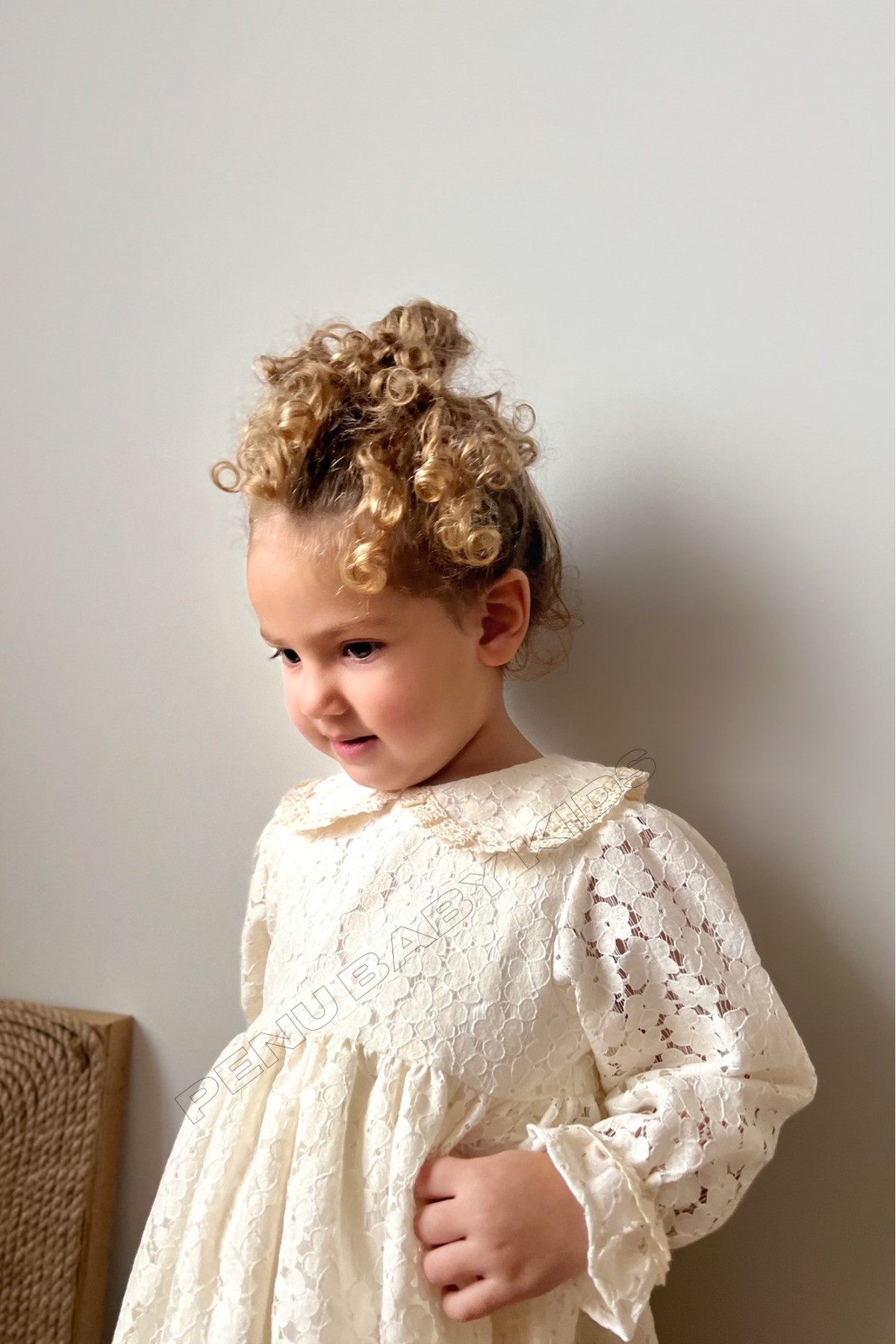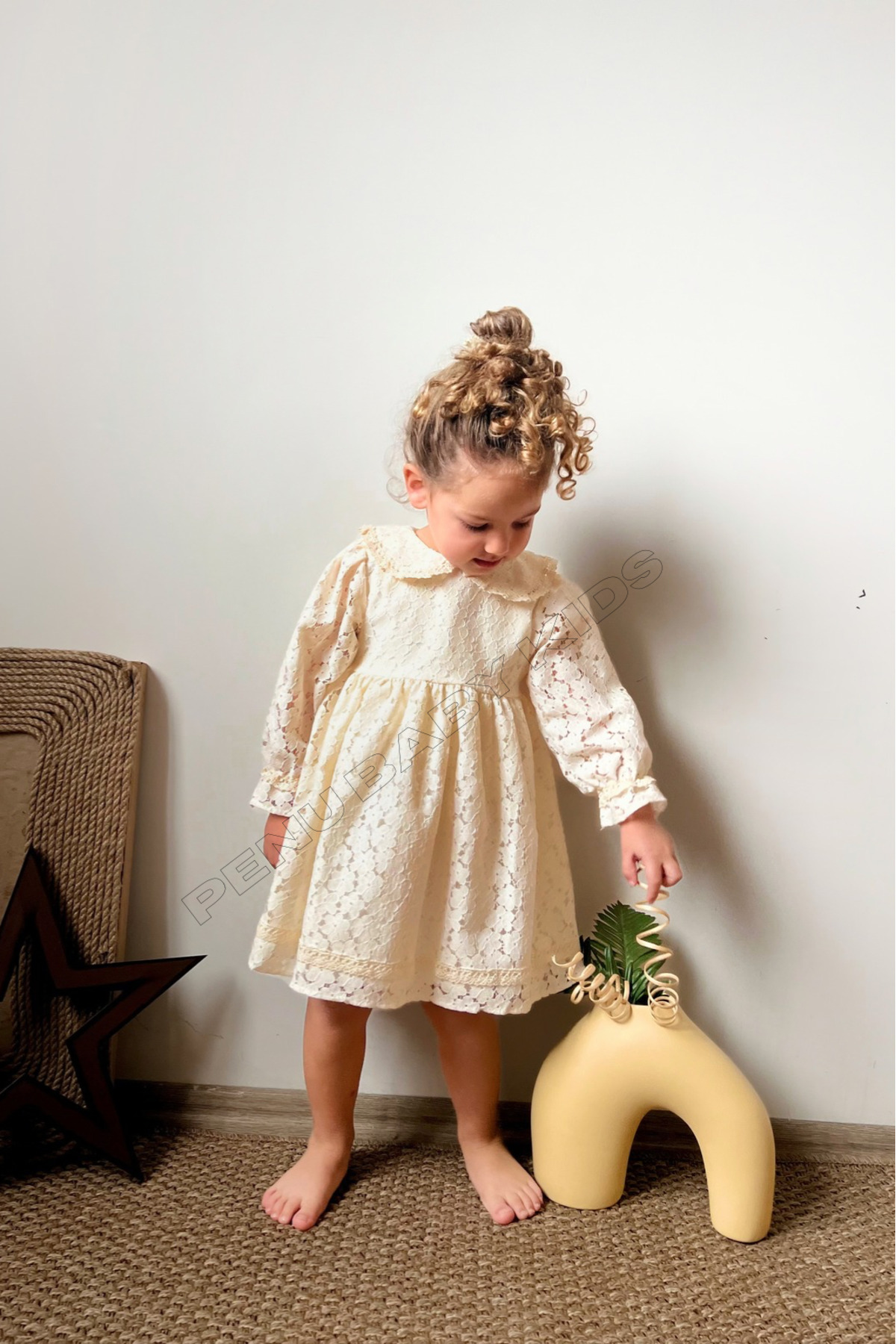 Ekru Çiçek Desenli Bebe Yaka Uzun Kol Kız Çocuk Kız Bebek Elbise Ekru Çiçek Desenli Bebe Yaka Uzun Kol Kız Çocuk Kız Bebek Elbise fistoçiçekuzun 4-5 Yaş