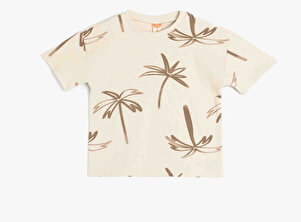 Palmiye Desenli Kısa Kollu Bisiklet Yaka Pamuklu Tişört Palmiye Desenli Kısa Kollu Bisiklet Yaka Pamuklu Tişört 5SMB10101TK 4-5 Yaş