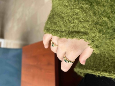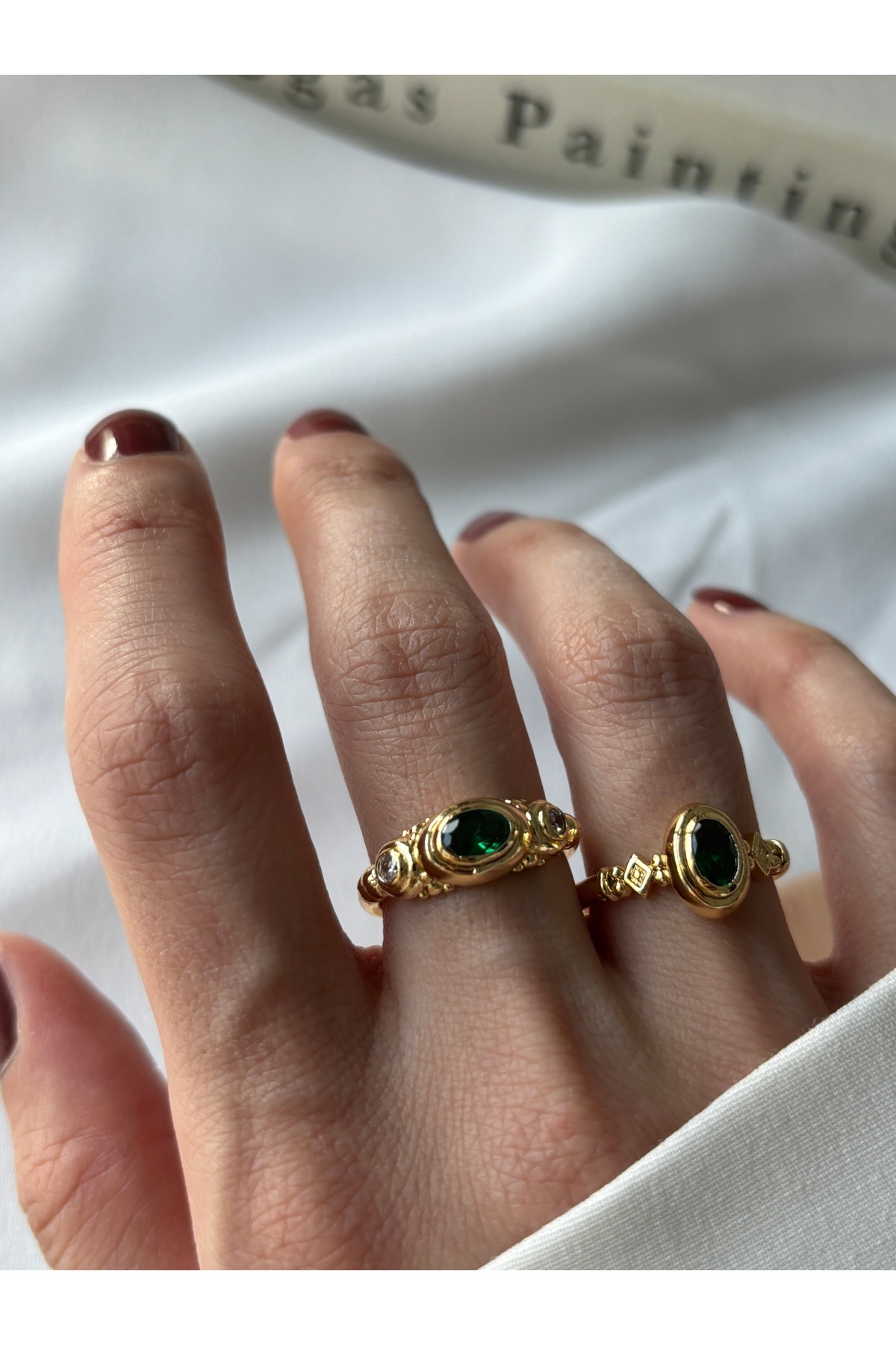 2'li Zümrüt Taşlı Vintage Yüzük Seti 2'li Zümrüt Taşlı Vintage Yüzük Seti RB1051 تک سایز