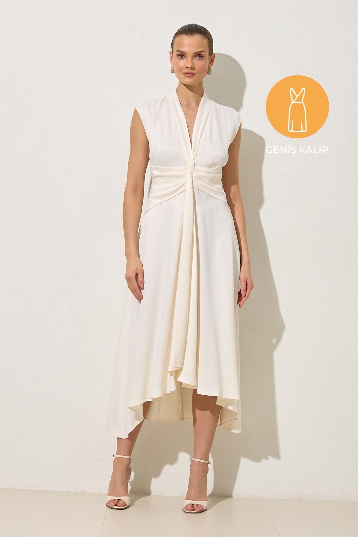 Siyah V Yaka Belden Detaylı Midi Boy Kolsuz Elbise Siyah V Yaka Belden Detaylı Midi Boy Kolsuz Elbise ST20250S4029601 M