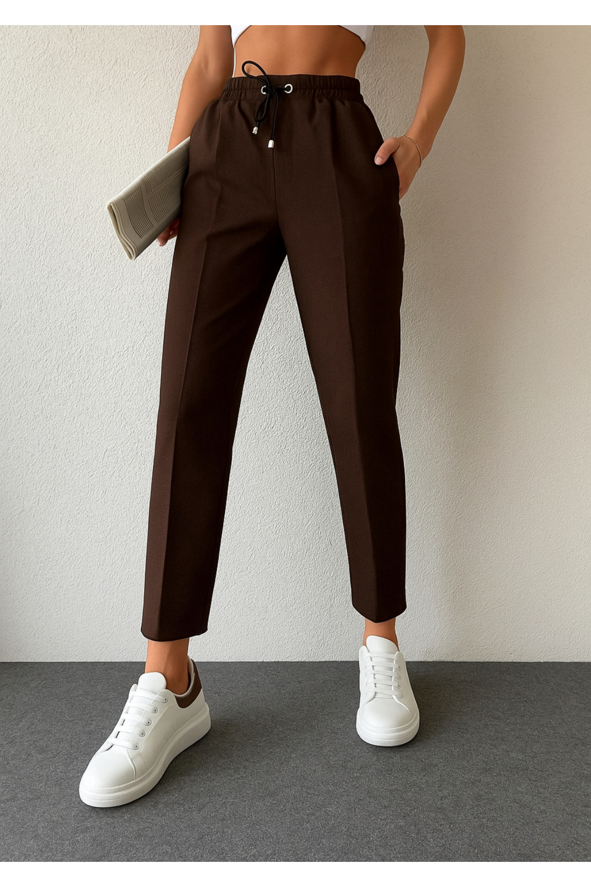 Kadın Siyah Beli Lastikli Havuç Kesim Kumaş Pantolon Kadın Siyah Beli Lastikli Havuç Kesim Kumaş Pantolon MLS06 56