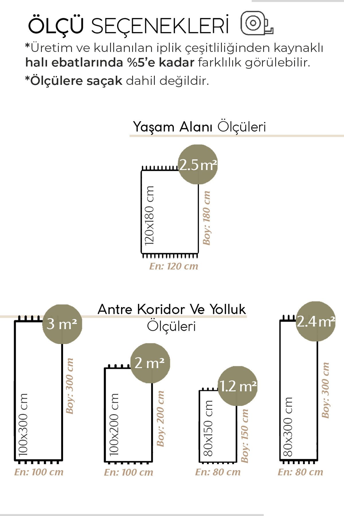 - Yıkama Talimatı : Derin Temizlik , Halınızı dilerseniz elinizde soğuk su ile beyaz sabun ile yıkayabilirsiniz fakat halıda bozulma olmaması adına yıkama servislerinden destek alınmasını öneriyoruz. ; Halınızın derin temizliği için el halısı yıkama konusunda uzman, halı yıkama merkezlerinden destek alınmalıdır. Yıkama merkezine halınızın naturel malzemeden üretildiği ve yıkama sırasında kesinlikle (Kostik) ağır kimyasal temizleyicilerin kullanılmaması gerektiği vurgulanmalıdır. ; Yıkama firması, yıkama işlemlerinde sert fırça ve aparat kullanılmaması ve kullanılan temizlik malzemesinden halının tamamen arındırılması gerektiği konusunda uyarılmalıdır. ; Temizleme sonrasında halınız asılmadan, yere serili olarak kısa sürede kurutulmalıdır. ; Halınız ıslakken kullanılmamalı ve direkt güneş ışığından korunmalıdır.