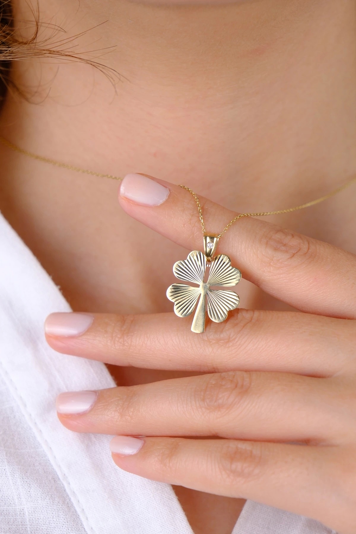 14 Ayar Altın Yoncalı Kolye Ucu 14 Ayar Altın Yoncalı Kolye Ucu P7586S1313 تک سایز