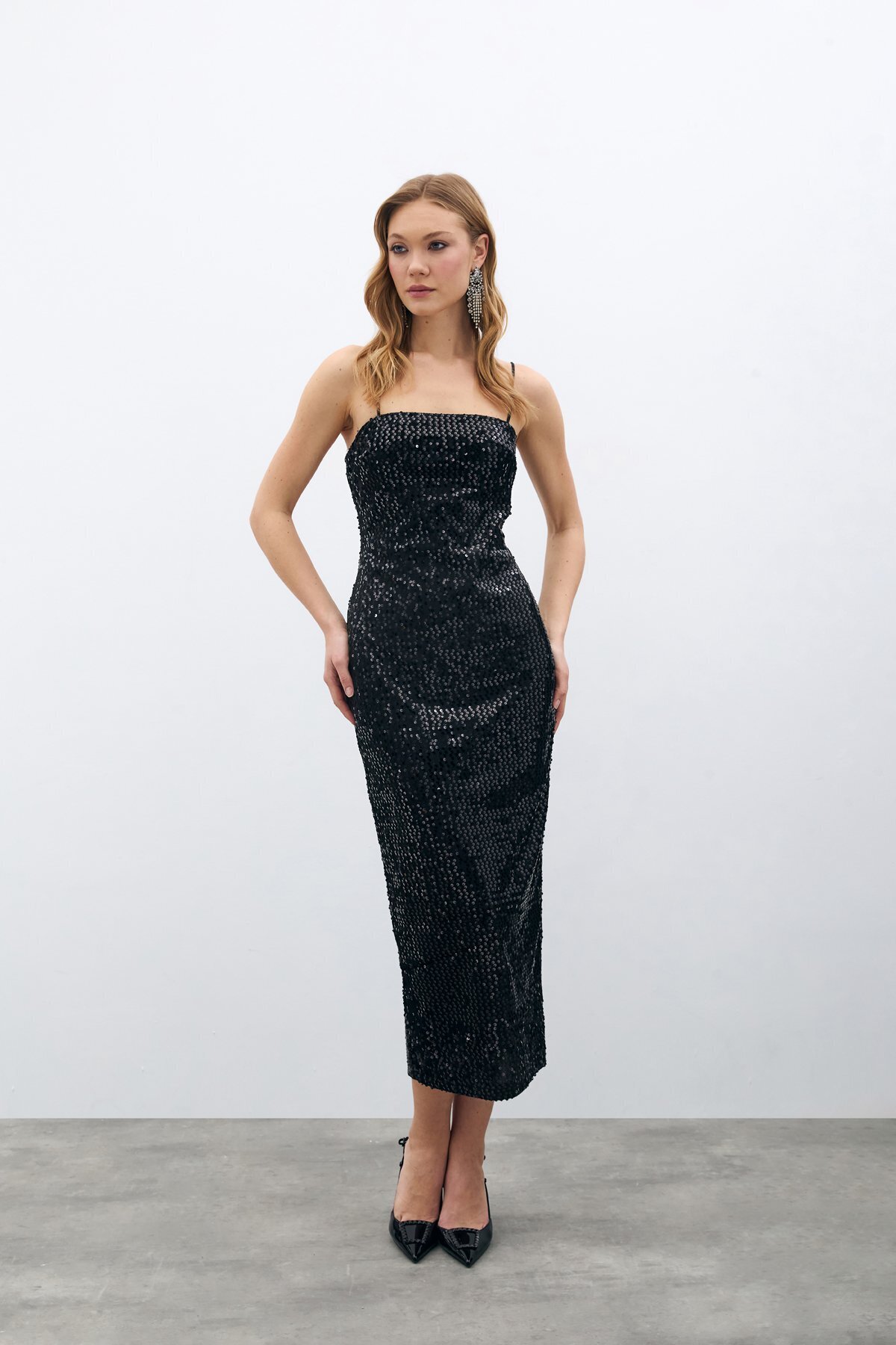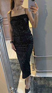 Kadife Payetli Uzun Elbise - Siyah Kadife Payetli Uzun Elbise - Siyah STN139KEL1677 42