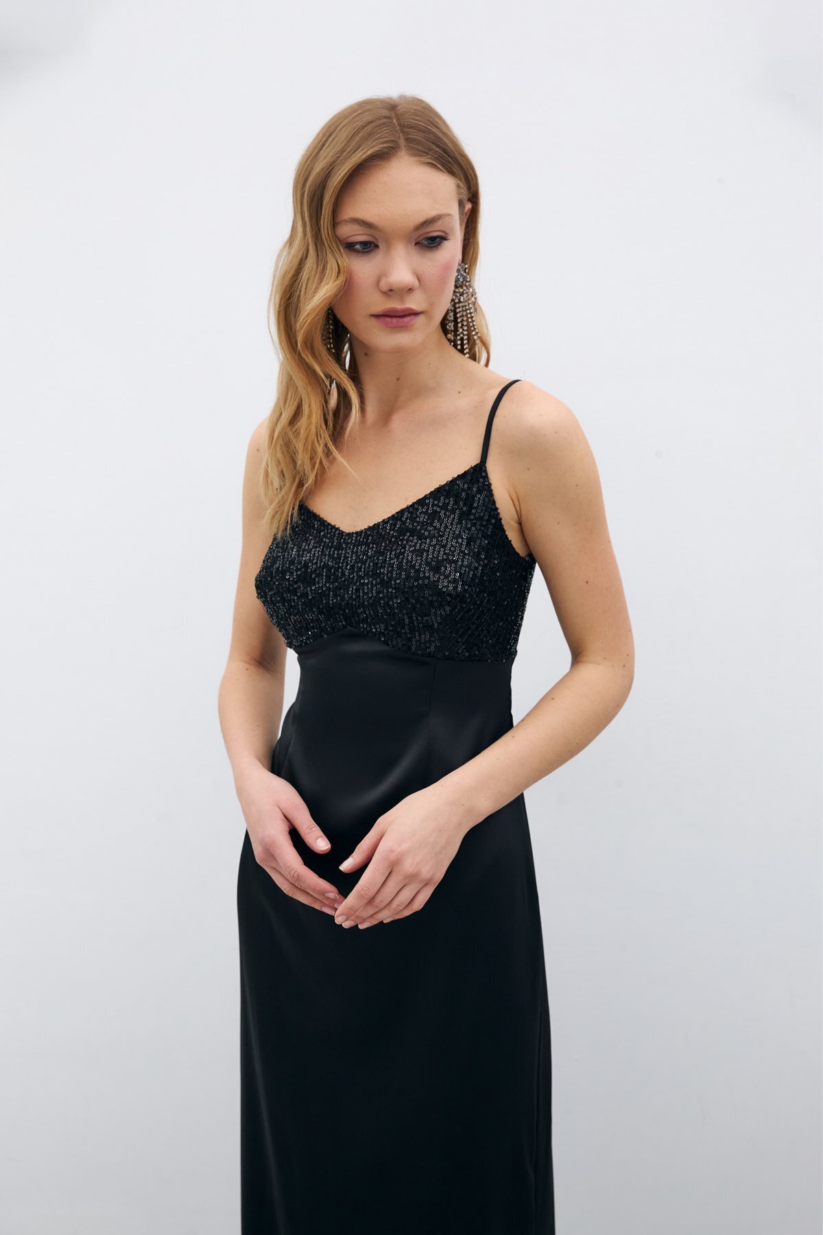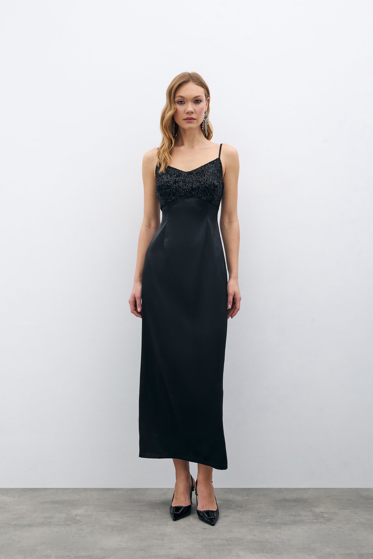 Payet Detaylı Saten Elbise - Siyah Payet Detaylı Saten Elbise - Siyah STN139KEL1573 42