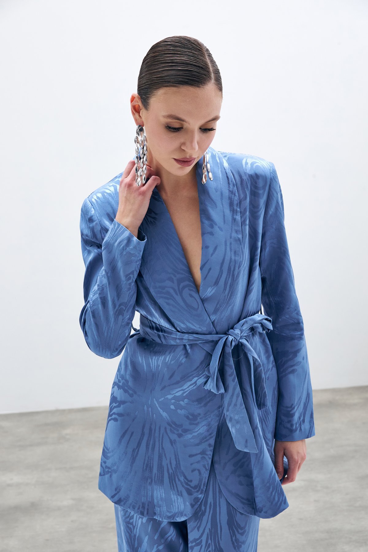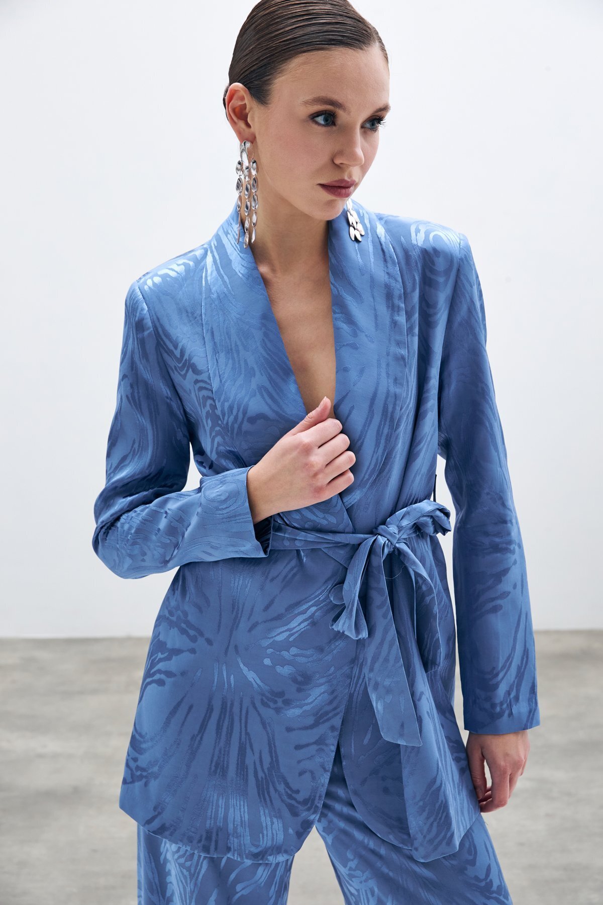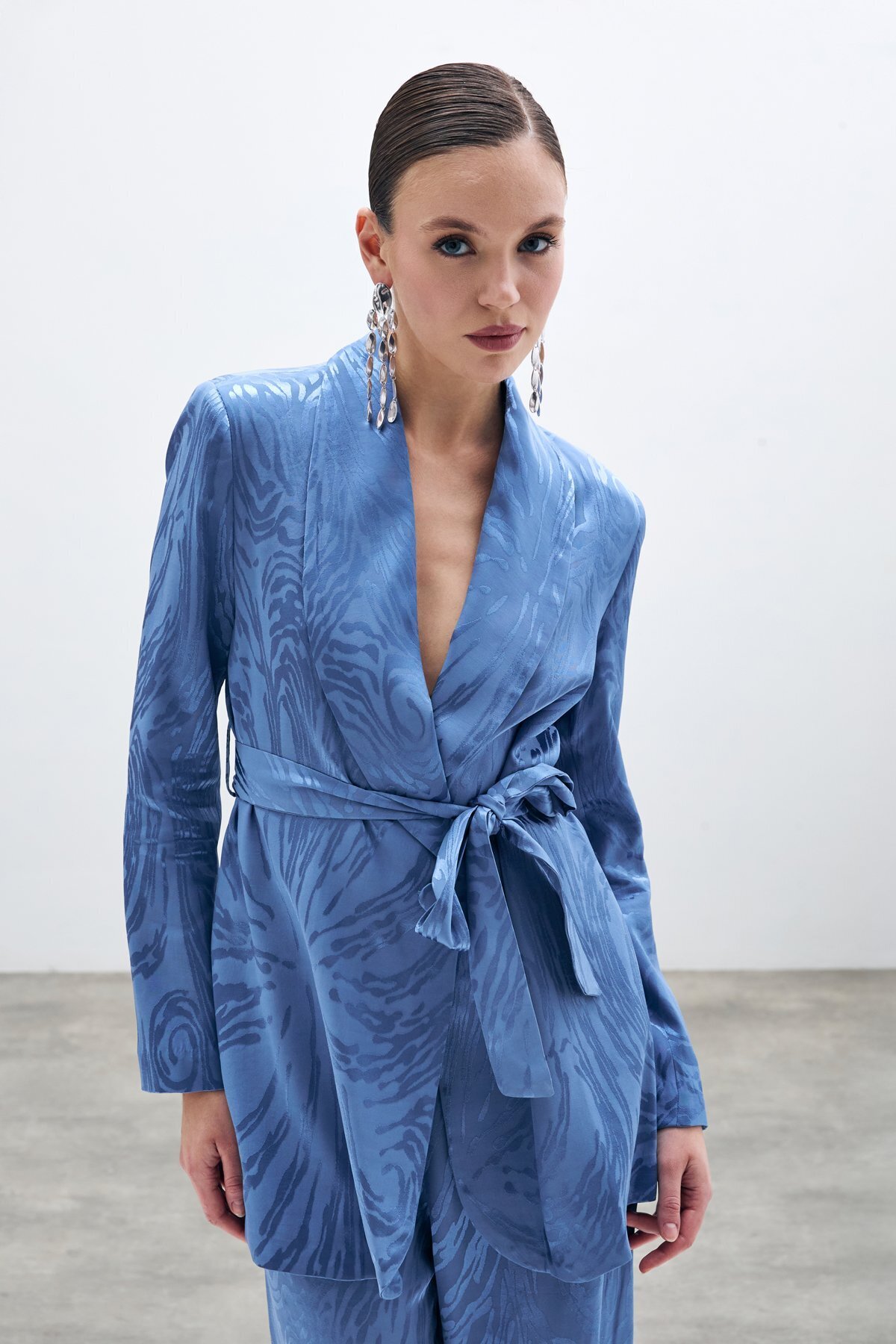 Kuşaklı Uzun Ceket - İndigo Kuşaklı Uzun Ceket - İndigo STN139KCE1517 42