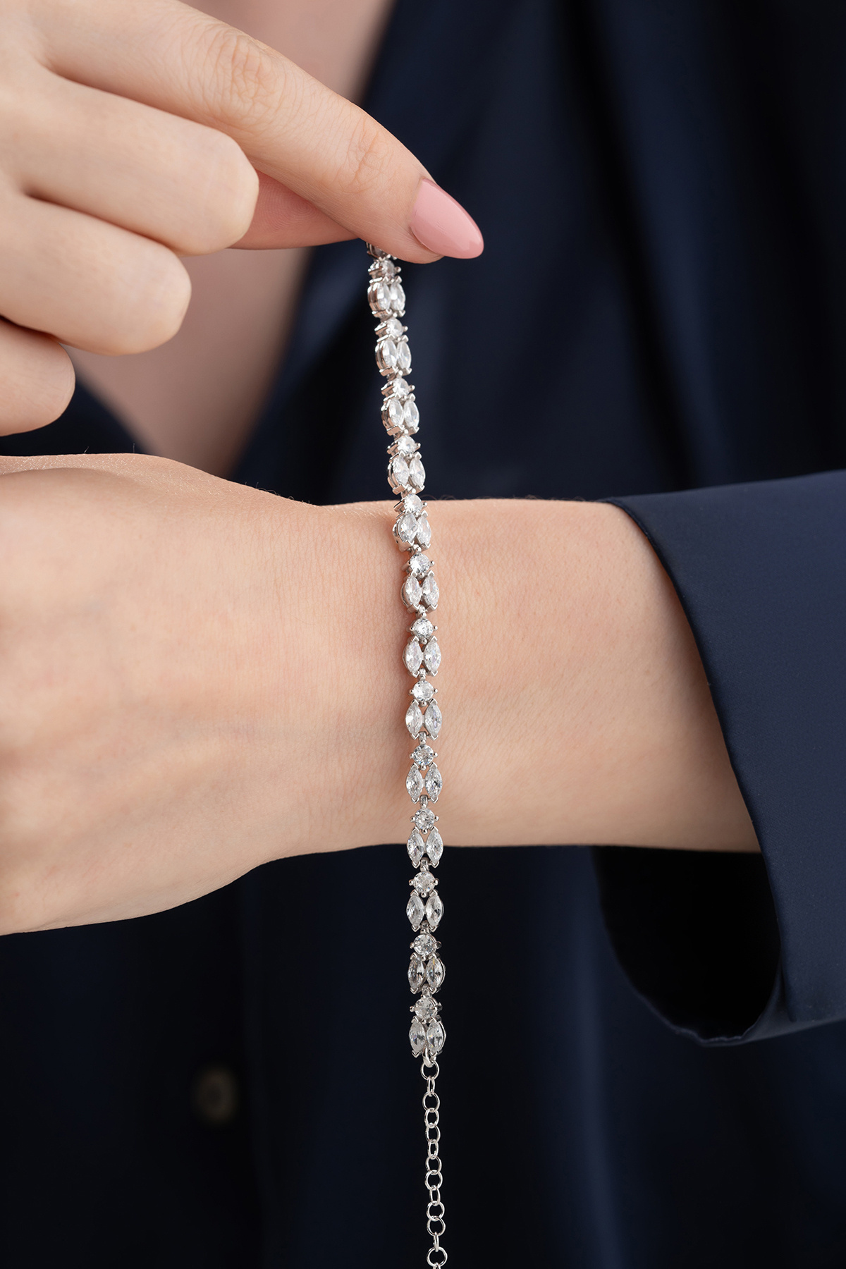 925 Ayar Gümüş Zirkon Taşlı Bileklik 925 Ayar Gümüş Zirkon Taşlı Bileklik KLM00305 تک سایز