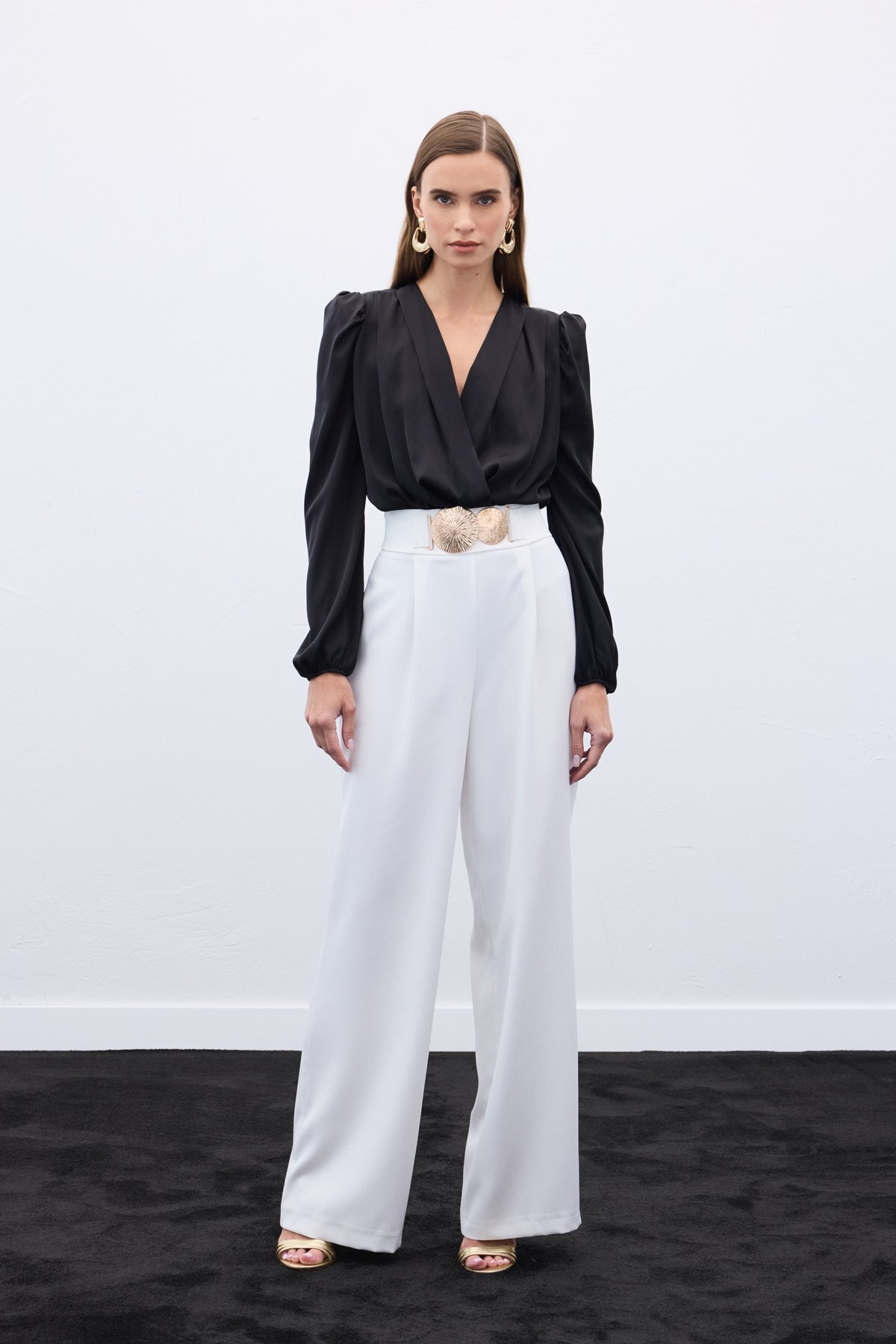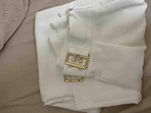 Bel Aksesuarlı Bol Paça Pantolon - Ekru Bel Aksesuarlı Bol Paça Pantolon - Ekru STN139KPA1254 42