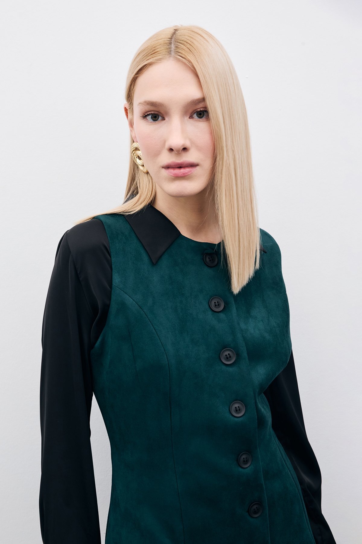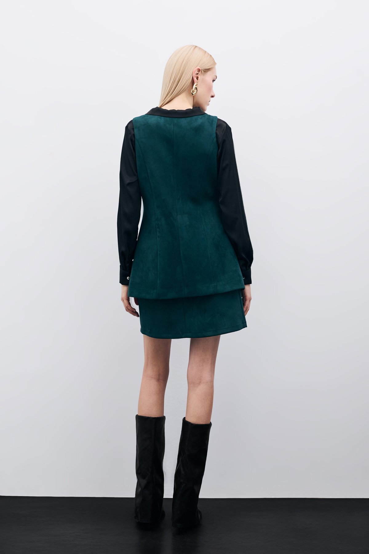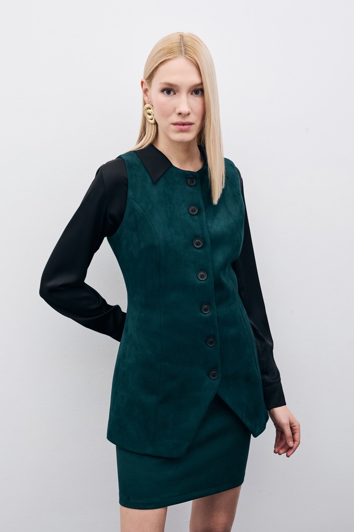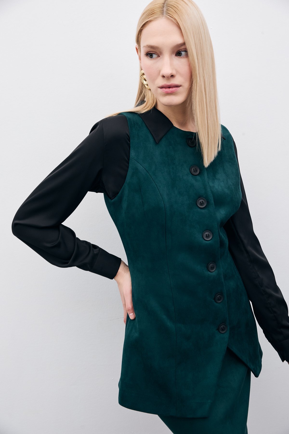 Düğmeli Uzun Süet Yelek - Zümrüt Düğmeli Uzun Süet Yelek - Zümrüt STN139KYE1639 42