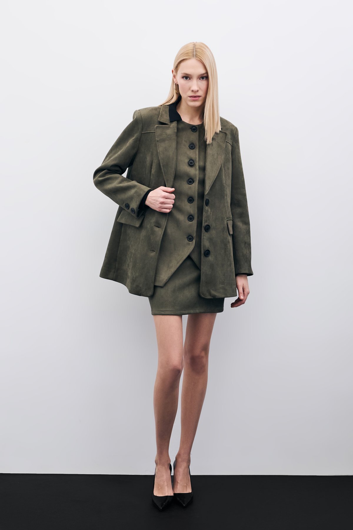 Düğmeli Uzun Süet Yelek - Haki Düğmeli Uzun Süet Yelek - Haki STN139KYE1639 42